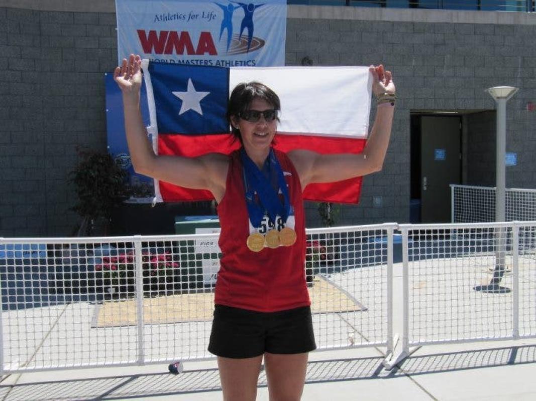 La atleta máster chilena Marcela Barrientos cumplió una notable actuación en el Campeonato Mundial Senior de Daegu 2017, al obtener tres medallas de oro en tres pruebas diferentes.