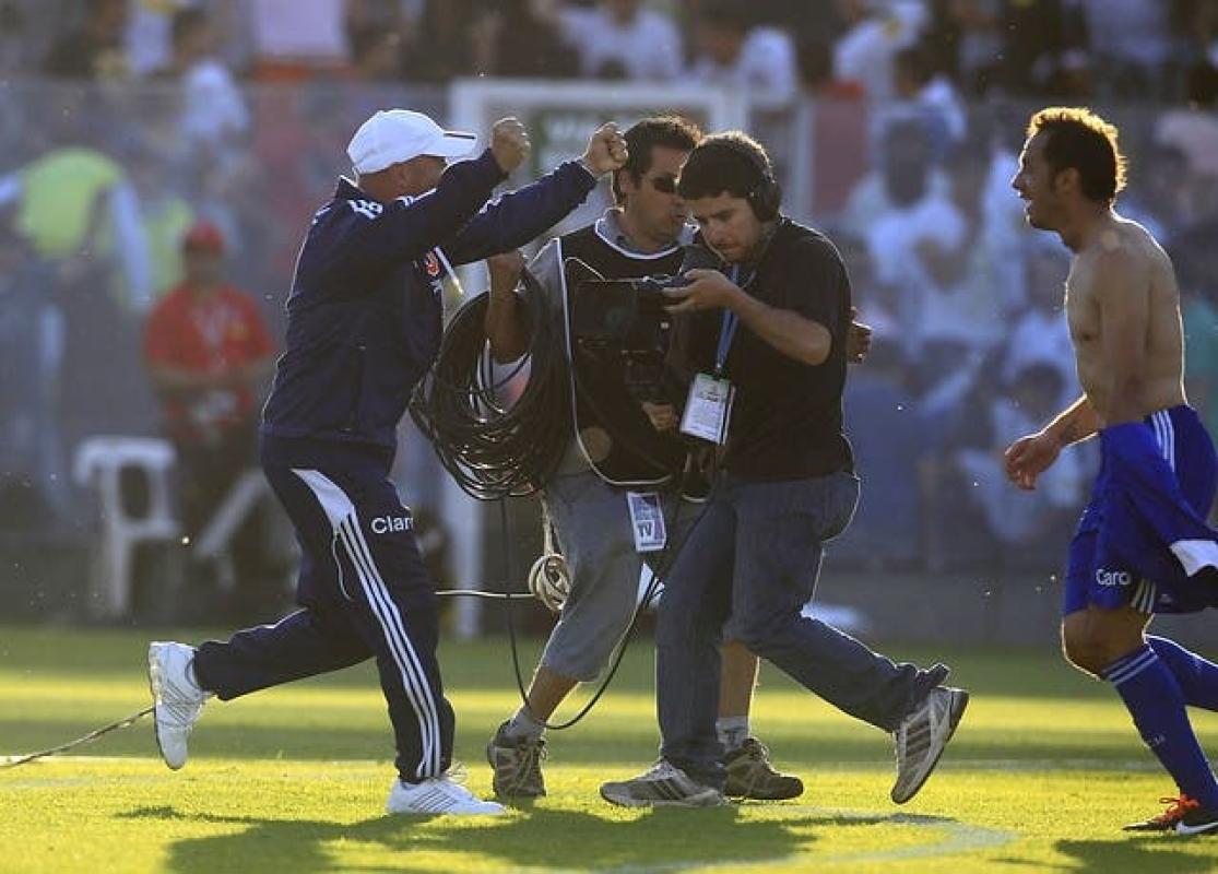 Díaz compartió parte de su performance en el escenario animando la jornada en redes sociales. Allí, apareció vestido con la indumentaria de La Roja, tal como lo hacía Sampaoli en Juan Pinto Durán.