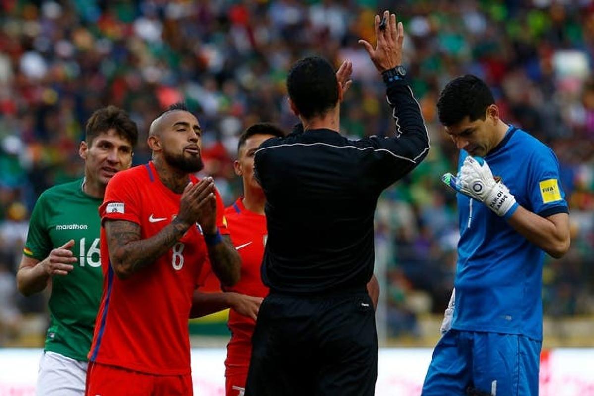 Sin embargo, el árbitro del encuentro del martes en el Estadio Hernando Siles, el colombiano Wilmar Roldán, asegura que jamás le mostró amarilla al tocopillano.