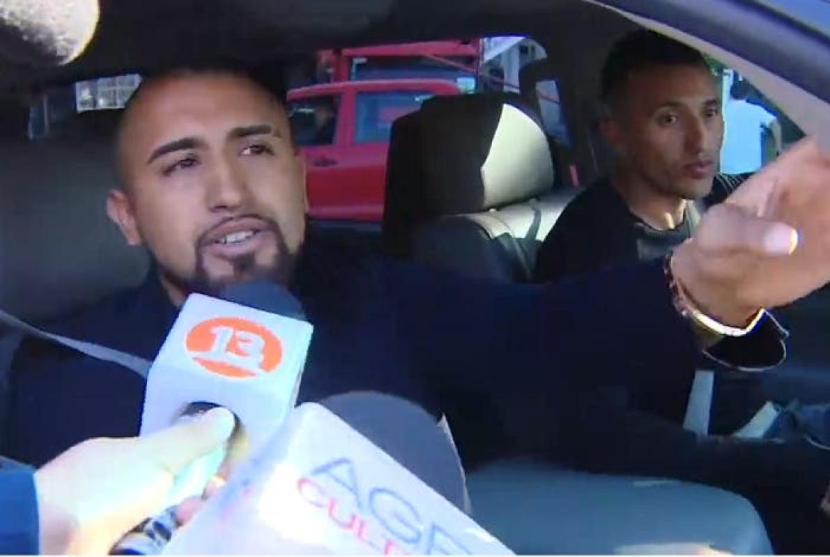 El mediocampista tuvo un breve contacto con la prensa en el vehículo dispuesto para su traslado al complejo Juan Pinto Durán.