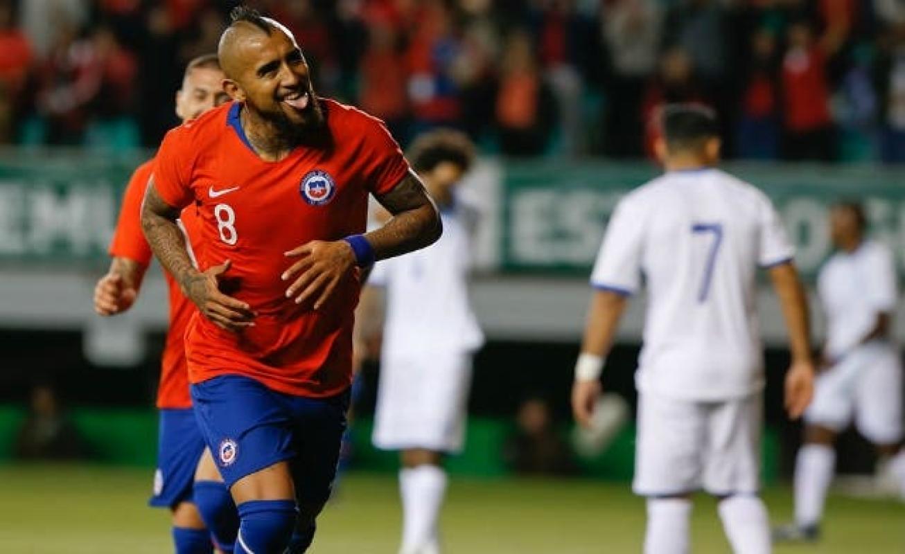 Arturo Vidal inauguró el marcador este martes en el duelo entre Chile y Honduras en el Estadio Germán Becker de Temuco y minutos más tarde aumentó de penal.