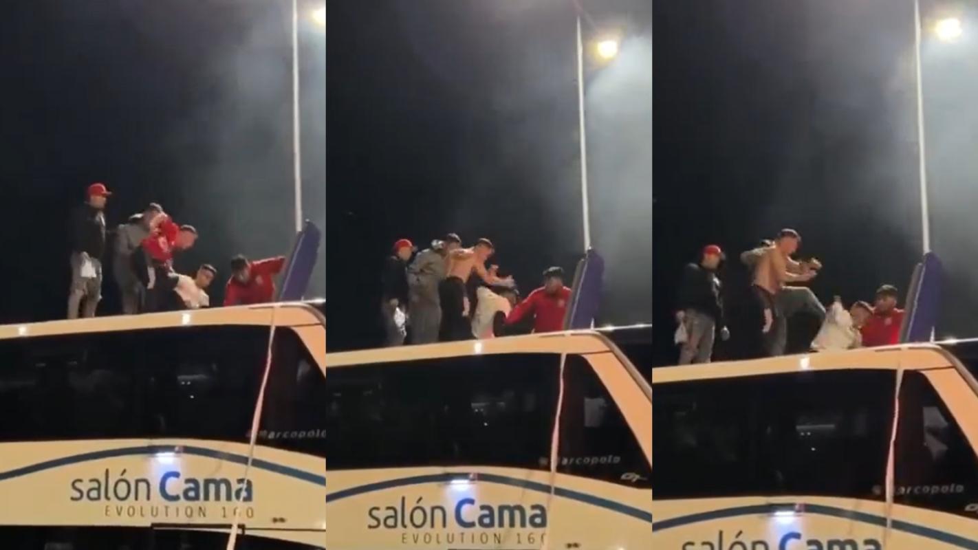 Cuando los jugadores intentaban compartir desde el bus con los hinchas que llegaron a alentarlos un video captó como dos de los individuos que se encontraba sobre el vehículo golpearon a Bayron Oyarzo luego de que éste no quisiera entregarles su indumentaria.