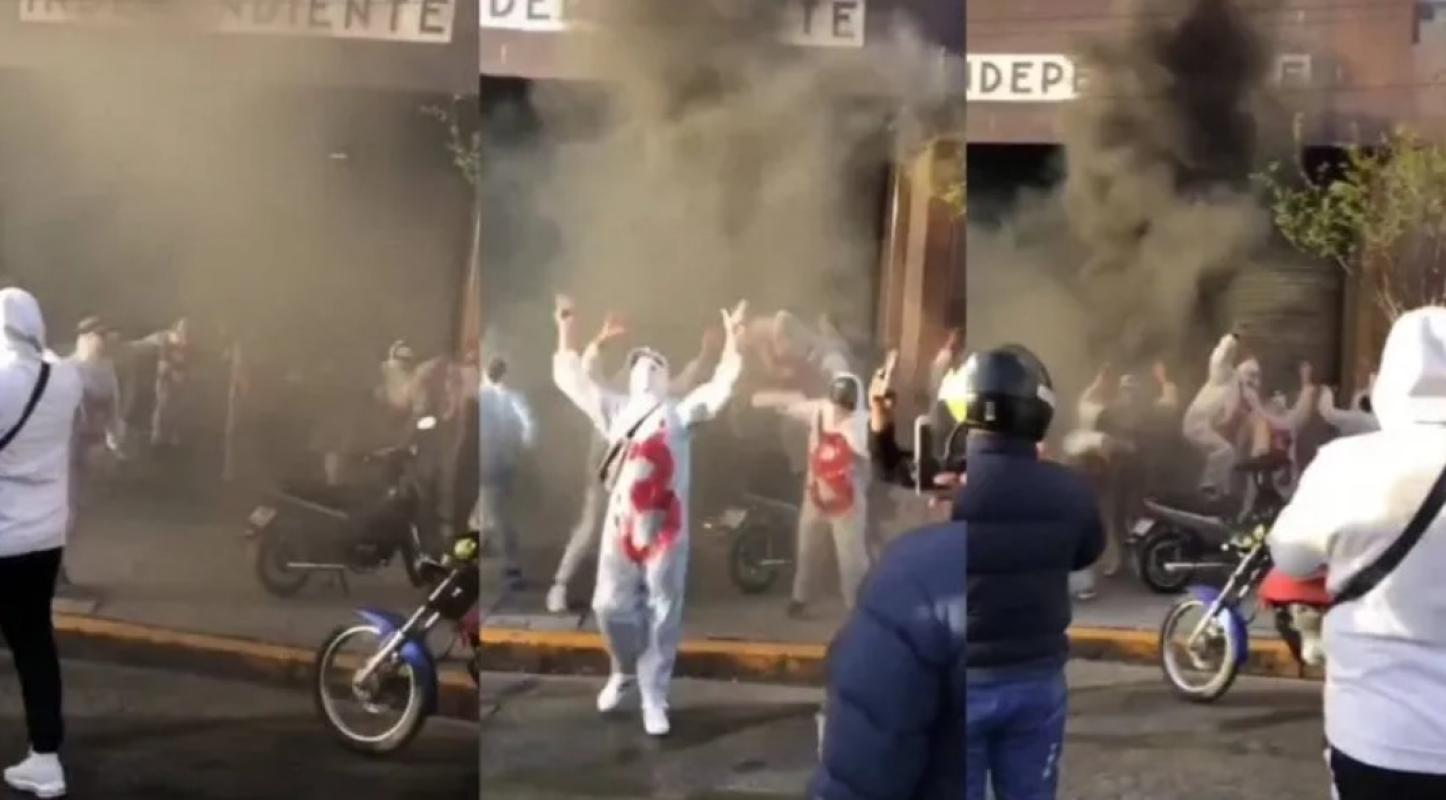 Fue durante el transcurso de este sábado que miles de hinchas salieron a las calles con banderas y camisetas del equipo comandado por Fernando Gago. Pero las miradas cayeron sobre un grupo que se disfrazó de fantasmas de la B y con humo negro realizó una especie de "funeral" afuera de la sede de Independiente.