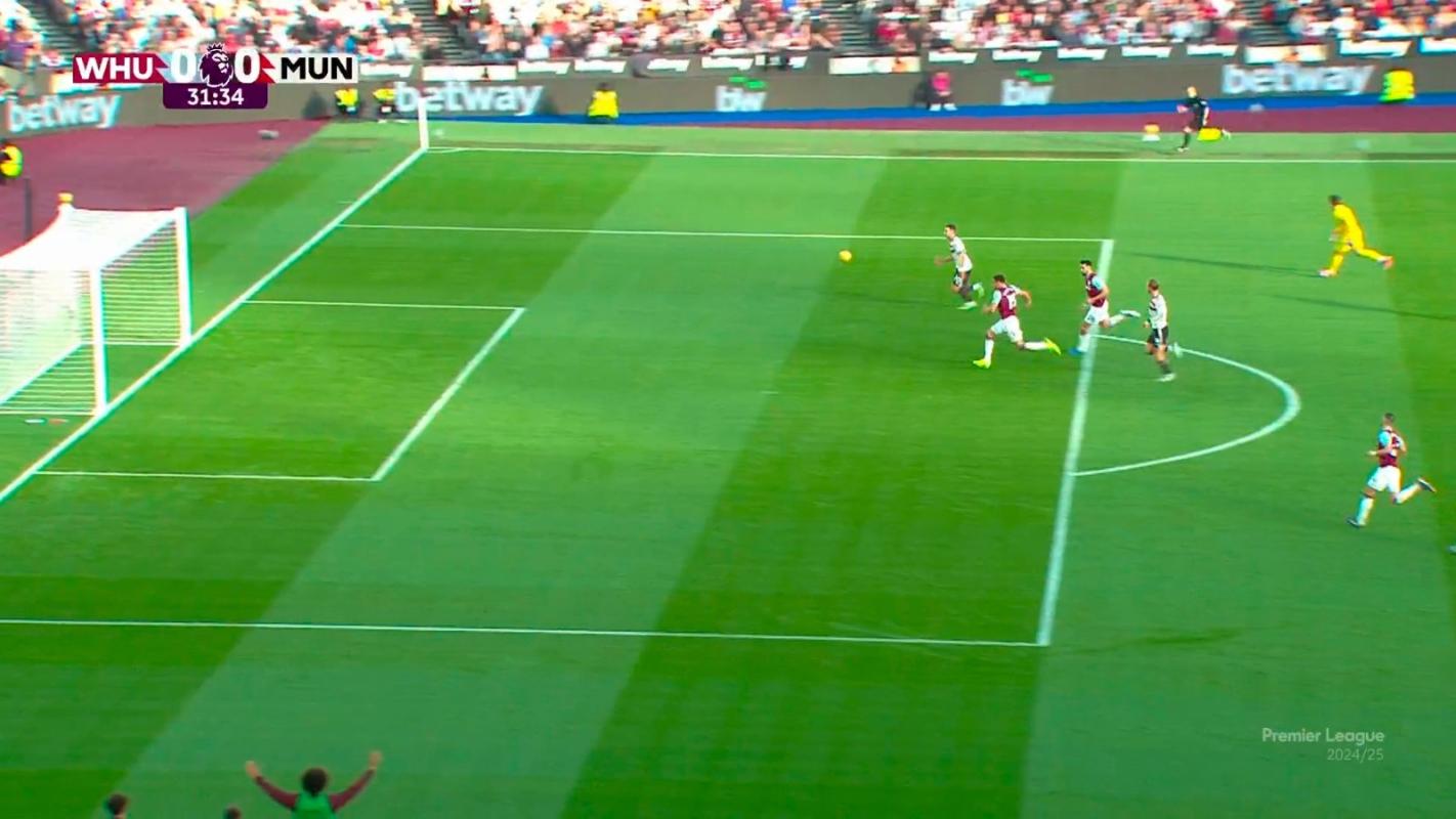 El portugués Diogo Dalot protagonizó una de las jugadas más insólitas de la temporada en el partido entre West Ham y Manchester United.
