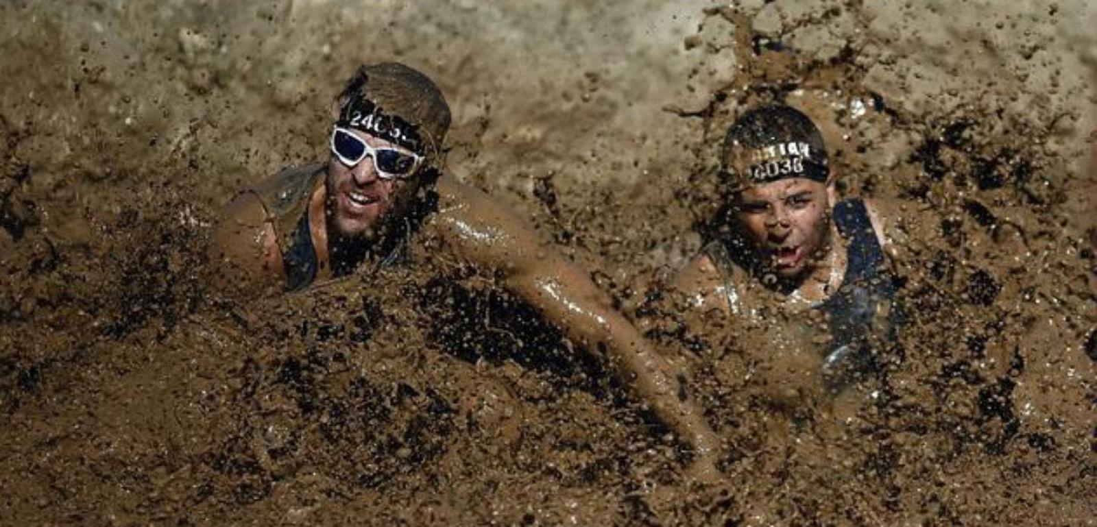 Como si fueran guerreros, deportistas deben superar distintas etapas, escalando muros o saltando a fosos de barro.