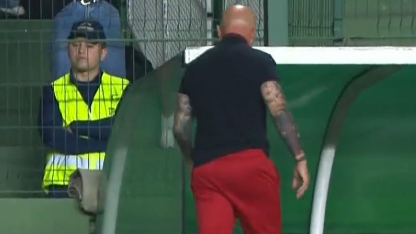 VIDEO | Pateó un micrófono: Así fue el ataque de furia de Jorge Sampaoli en empate entre Goiás y Flamengo