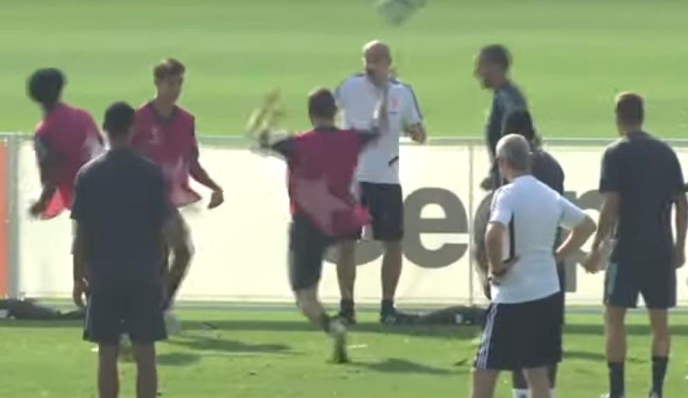 El exjugador del Real Madrid participaba del clásico juego "el tontito" junto a sus compañeros, entre quienes se encuentra Cristiano Ronaldo, Paulo Dybala y Juan Guillermo Cuadrado, cuando no toleró haber sido una de las víctimas del círculo que formaban sus compañeros.