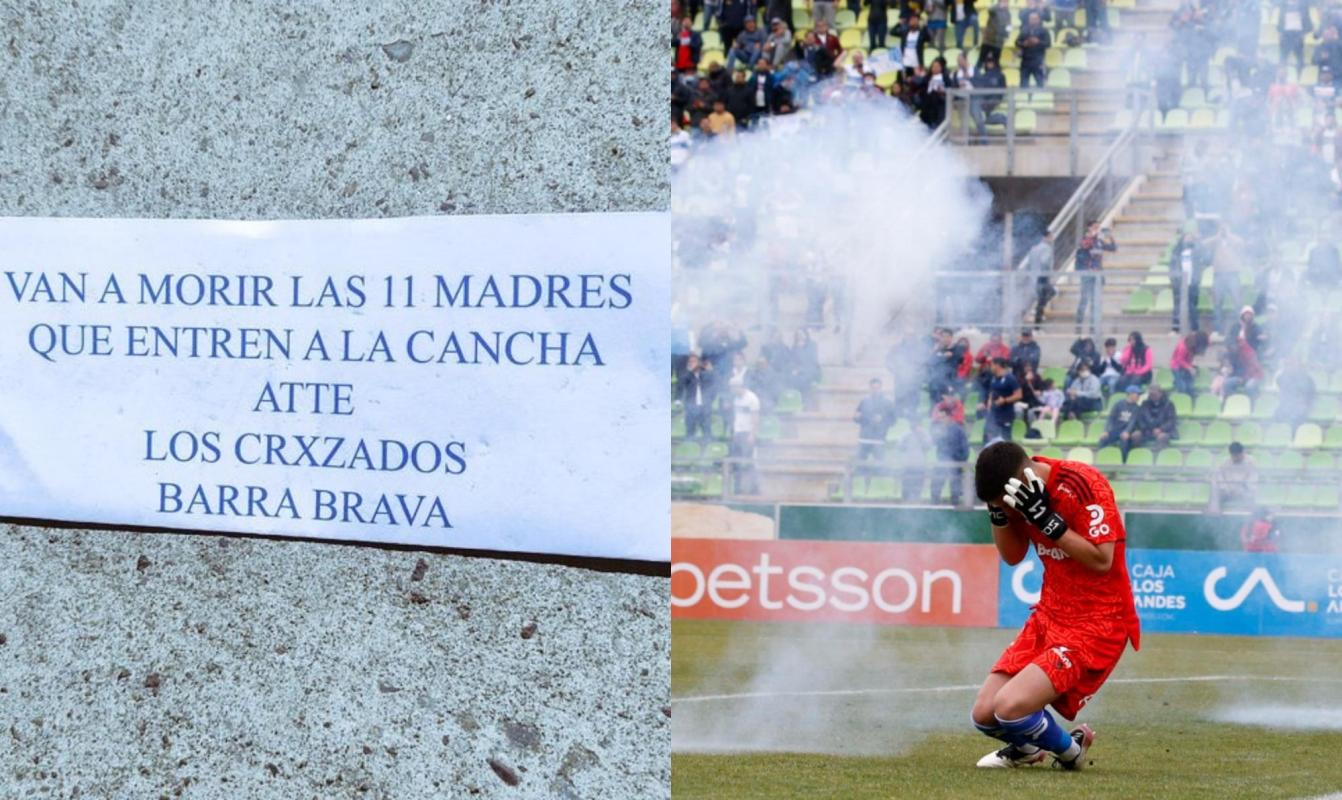 De acuerdo a una imagen que se ha viralizado en Twitter, en los alrededores del recinto rancagüino la barra de la UC habría pegado un papel impreso con el mensaje “Van a morir las 11 madres que entren a la cancha. Atte. Los Crxzados. Barra Brava”