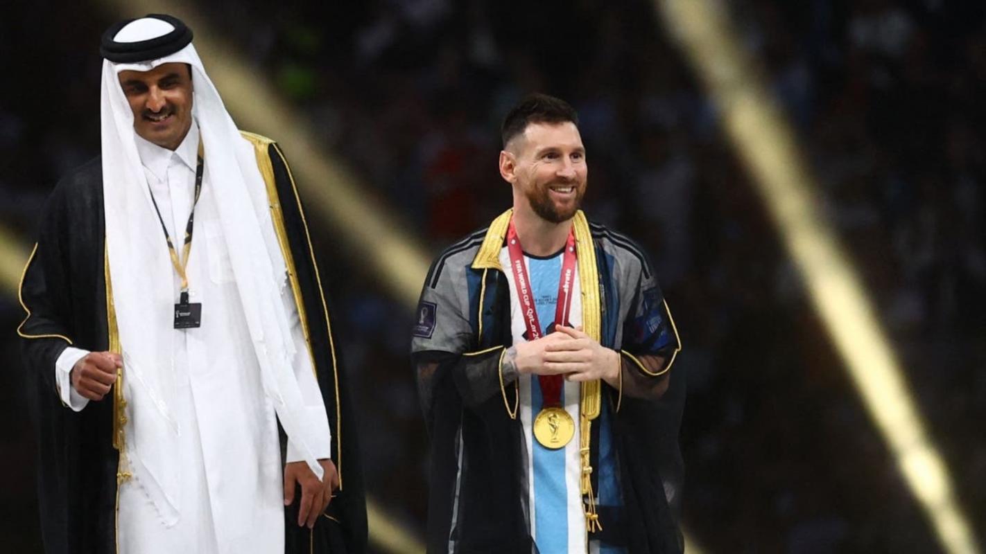 La “bata” usada por “La Pulga” le fue entregada y puesta por el Emir catarí, Tamim bin Hamad Al Thani, segundos antes de que le entregaran la copa.