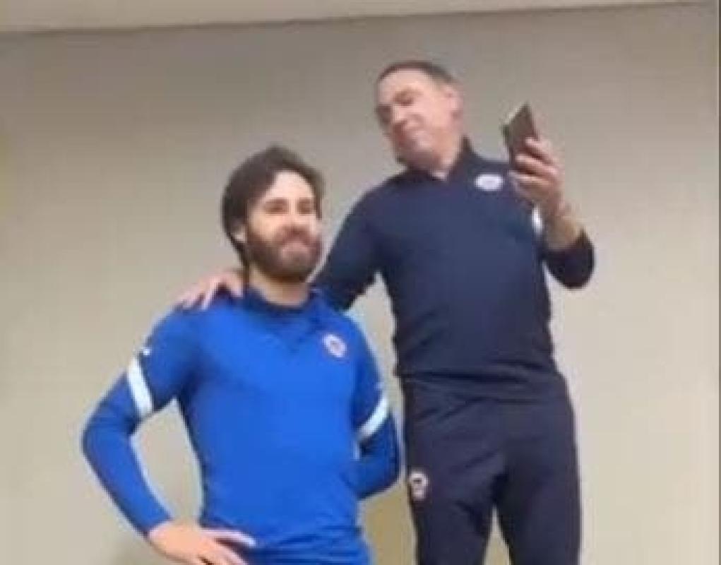 El ex futbolista español, quien tuvo su carrera como entrenador principalmente en el fútbol inglés, acompañó a un tímido Brereton a cantar frente a sus compañeros, quienes lo animaban con palmas.
