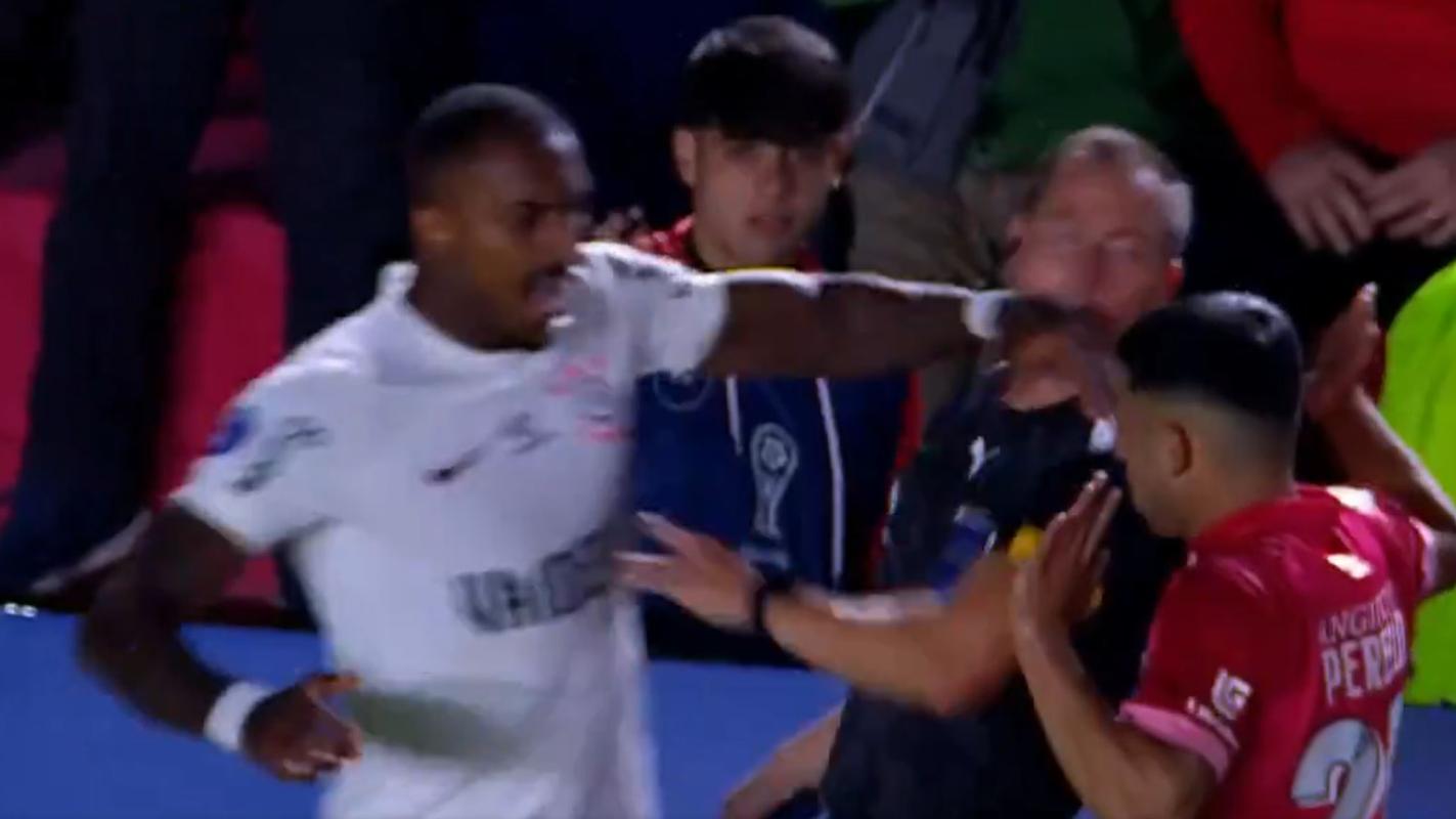 El juez de línea rápidamente acusó al árbitro central del partido, Piero Maza, quien sacó la roja directa al defensa brasileño, dejando con uno menos al Corinthians.