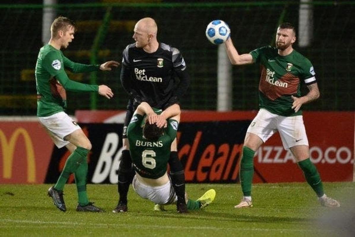 Aaron McCarey golpeó a su compañero del Glentoran, el defensa Bobby Burns, luego que perdiera un balón que derivó en un contragolpe y el gol del empate de los rivales.
