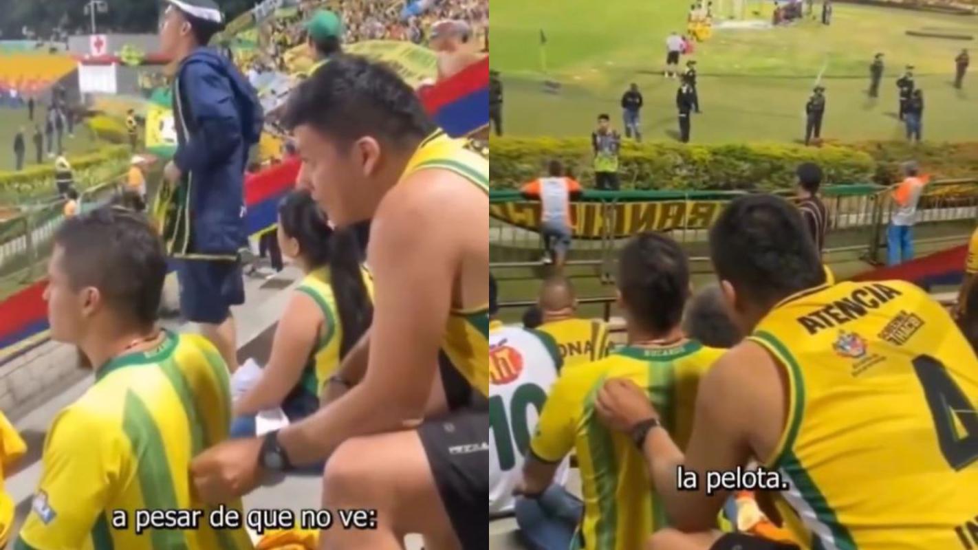En viral se convirtió el video donde se ve a dos personas disfrutando de un partido de fútbol en Colombia, pero con una particularidad: un joven iba "relatando" el encuentro en la espalda de su amigo con discapacidad visual.