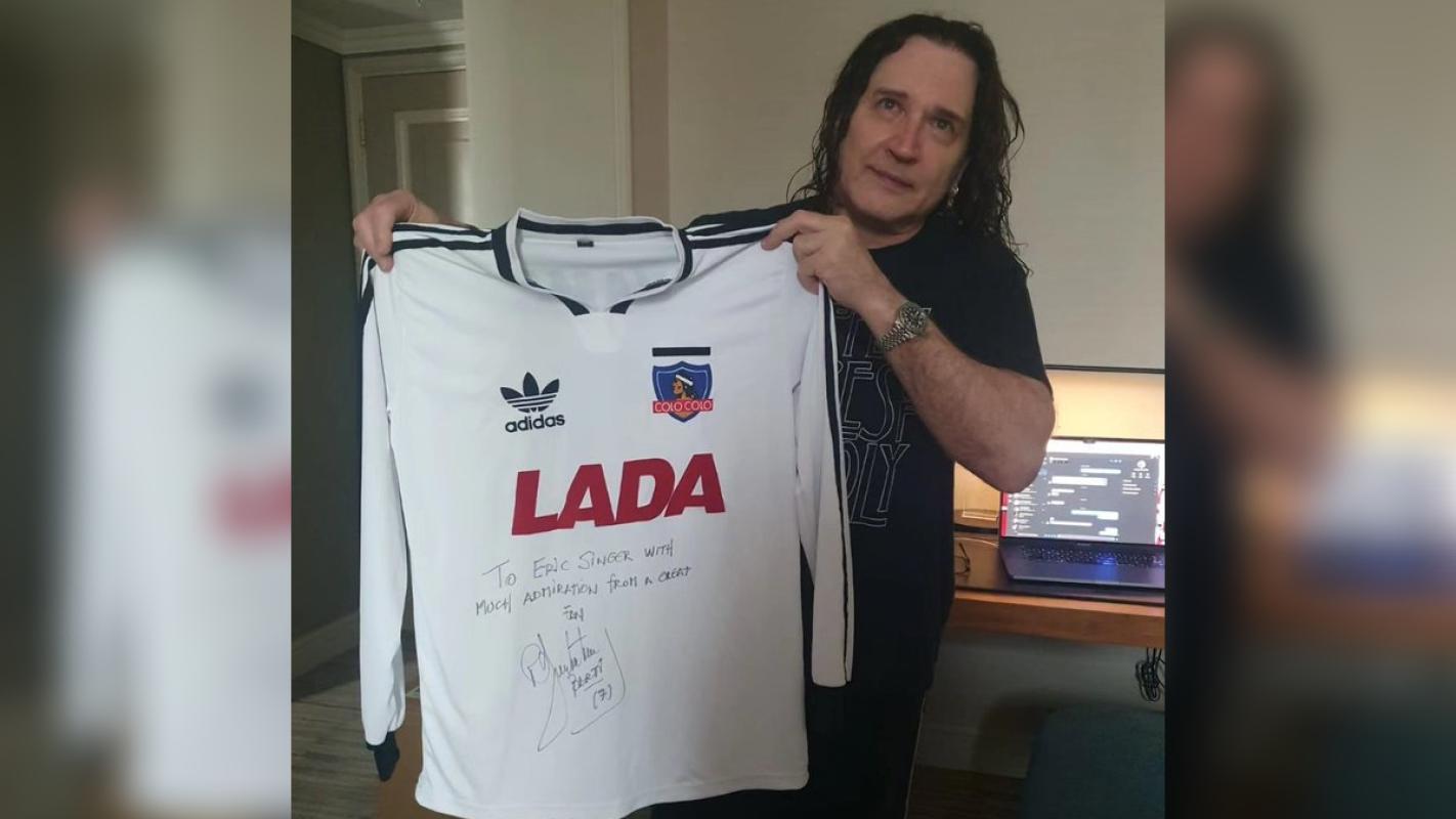Marcelo Barticciotto obsequia histórica camiseta de Colo Colo a Eric Singer de Kiss