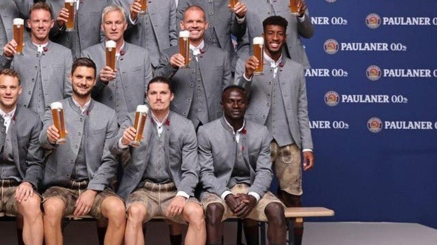 Se trata de una sesión de fotos anual con su socio cerveceroPaulaner, donde los futbolistas posaron con pantalón de cuerpo y llevaron trajes tradicionales bávaros.