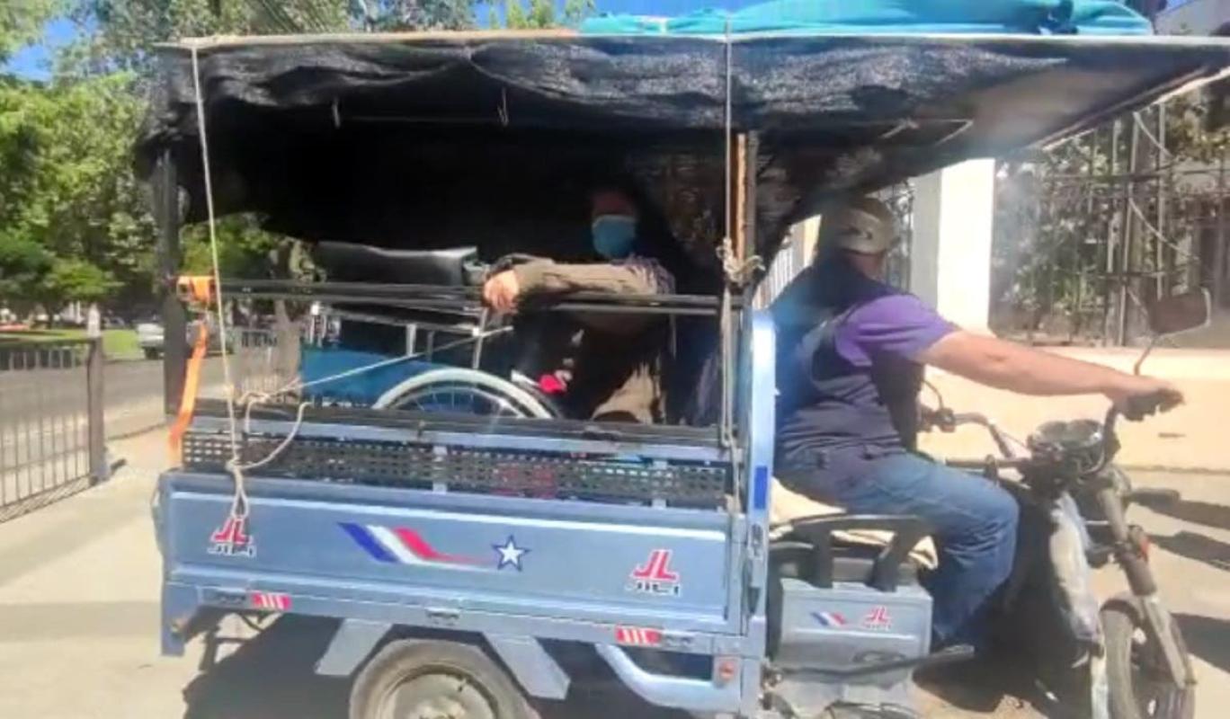 Juan Vargas Cid arribó hasta el mencionado local de votación en un carrito, donde traslada a su esposa, Marta Curín, quien por padecer una serie de enfermedades, no puede trasladarse por sí sola.
