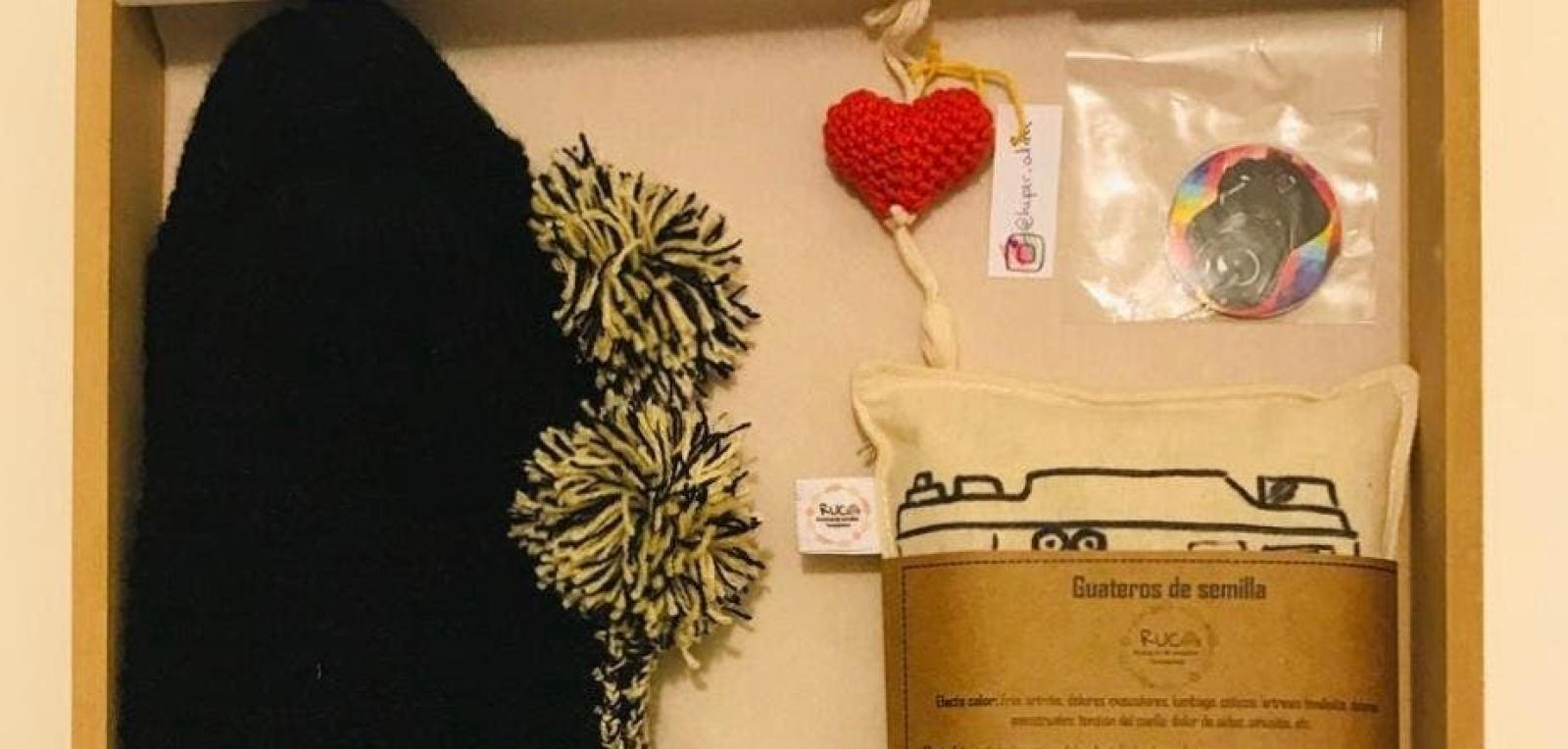 Para los padres están: La "Caja Nocturna", que trae un antifaz de guateros de semilla para los dolores de cabeza y un estuche de género, donde también viene un cepillo de dientes y pasta orgánica para blanqueamiento, y la "Caja corazón", hecha por cinco mujeres, que tiene un corazón tejido, un par de pantuflas tejidas, un guatero multifuncional y cuatro imanes.