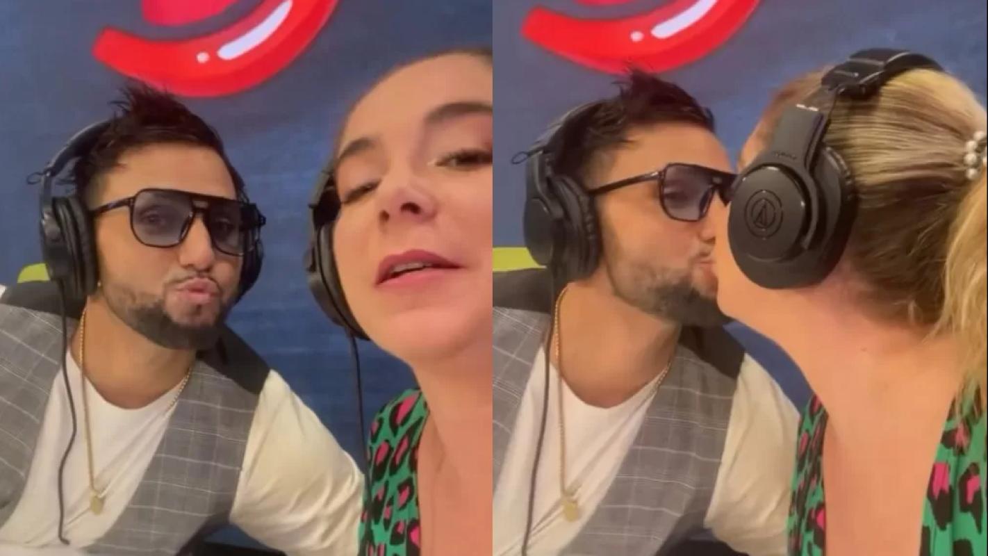 "Hola chicos, ¿Cómo están? ya estamos casi al aire acá en Te saco a colación, nuestro primer programa... ¿Con quién más?", expresó mientras enfocaba a Gerardo Rivera, quien le pidió un beso.
