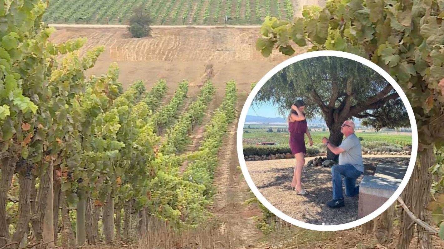 “Estaba aquí, vine a buscarlos porque había terminado su experiencia, los invité a que se tomaran una foto bajo nuestro espino que es nuestro emblema de la viña y aquí soltó el bastón, se arrodilló y le pidió matrimonio a su prometida”, contó Mariana González.