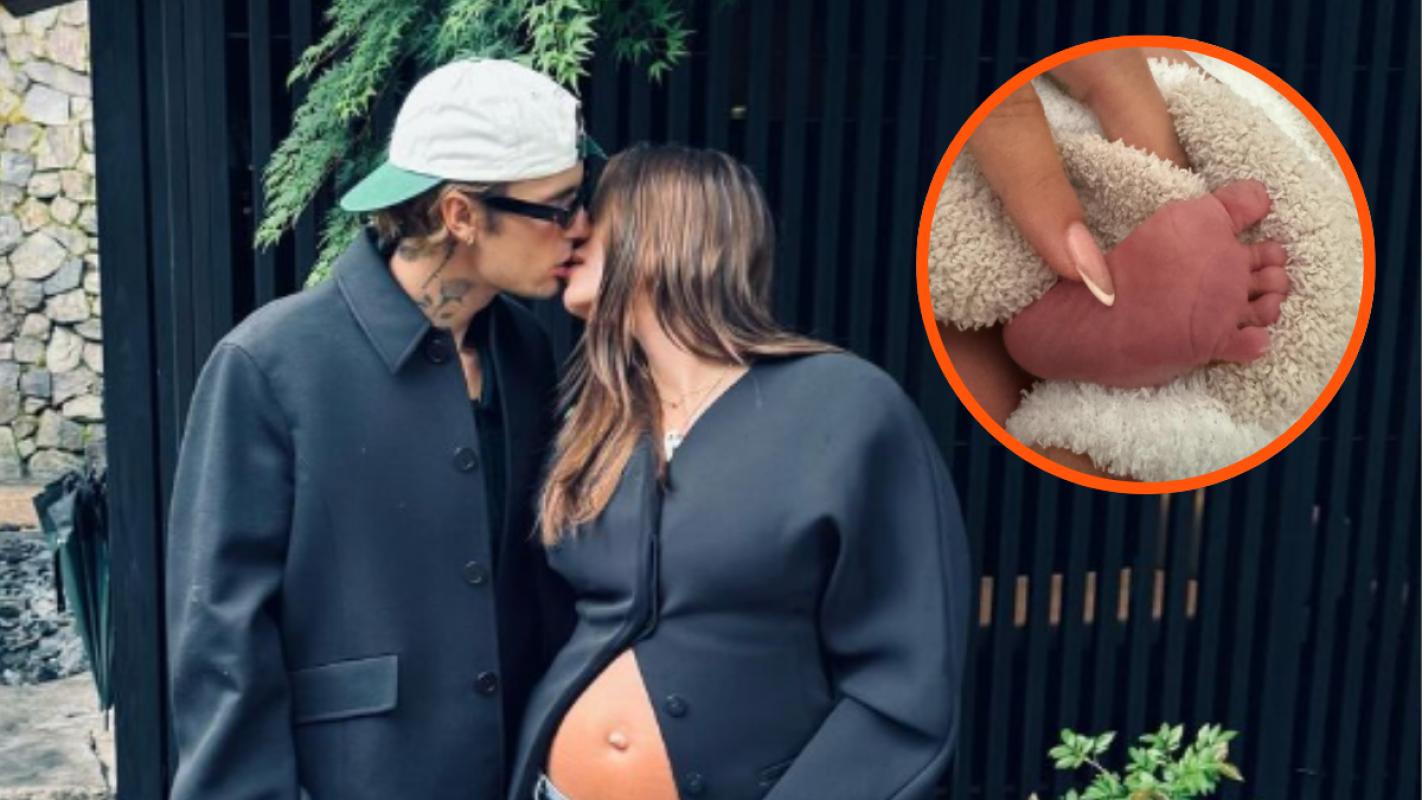 En la fotografía, se puede ver el pie del bebé junto a la mano de su madre, la modelo Hailey Bieber.