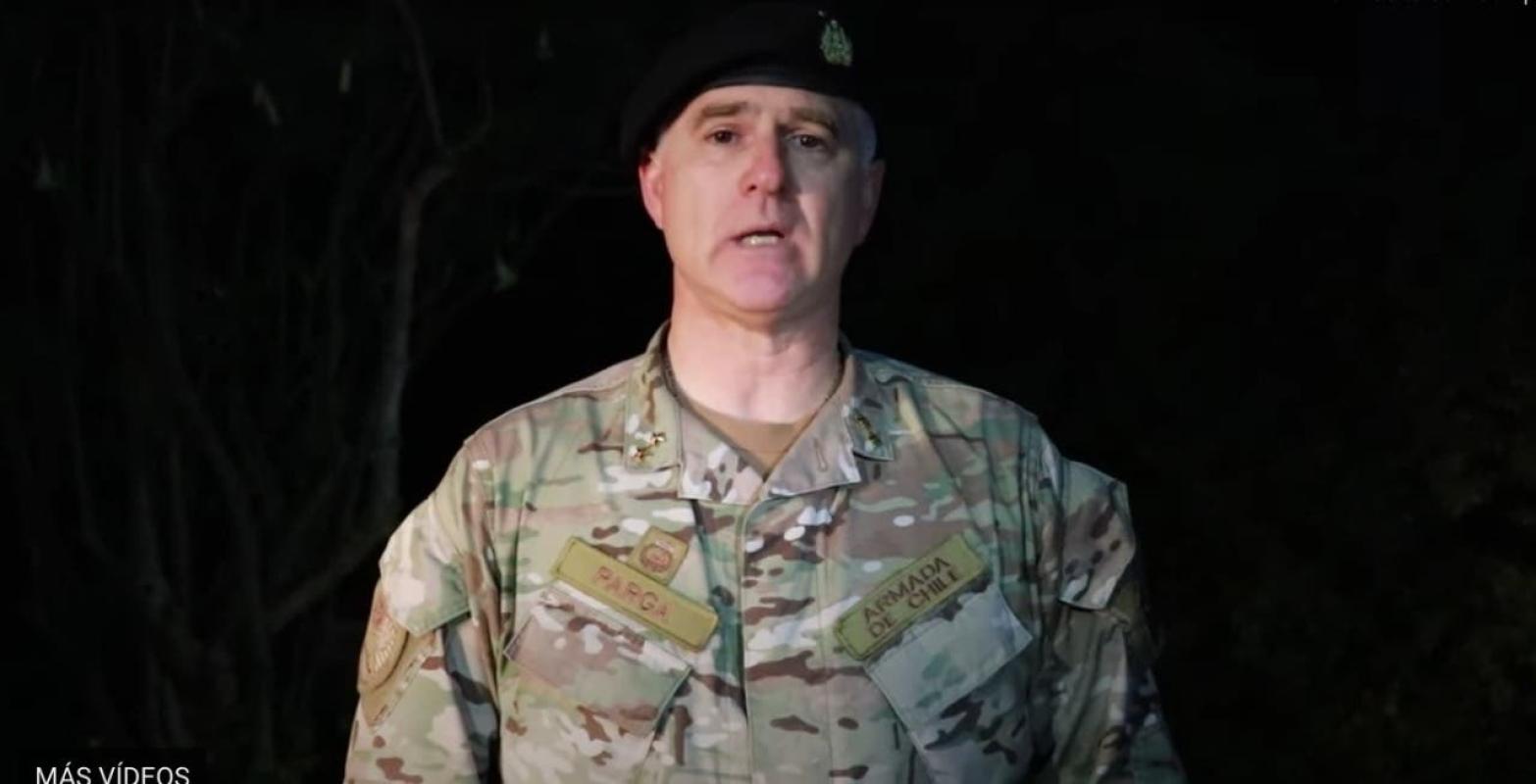 La cronología de una jornada violenta: En el video de 2 minutos y 50 segundos, Parga detalló que los incidentes comenzaron a la 1:50 pm, cuando, según dijo, Carabineros que recorrían el kilómetro 8 de la ruta P-72-S, informaron que 15 encapuchados habían derribado un paradero. Luego lo rociaron con líquido acelerante y lo encendieron.