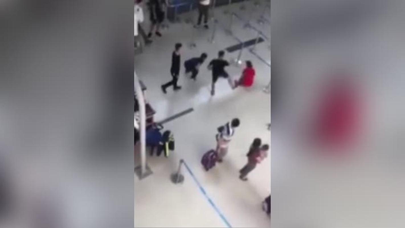 Fue en ese momento que interviene el personal de seguridad del aeropuerto, recibiendo golpes por parte de otro de los hombres.
