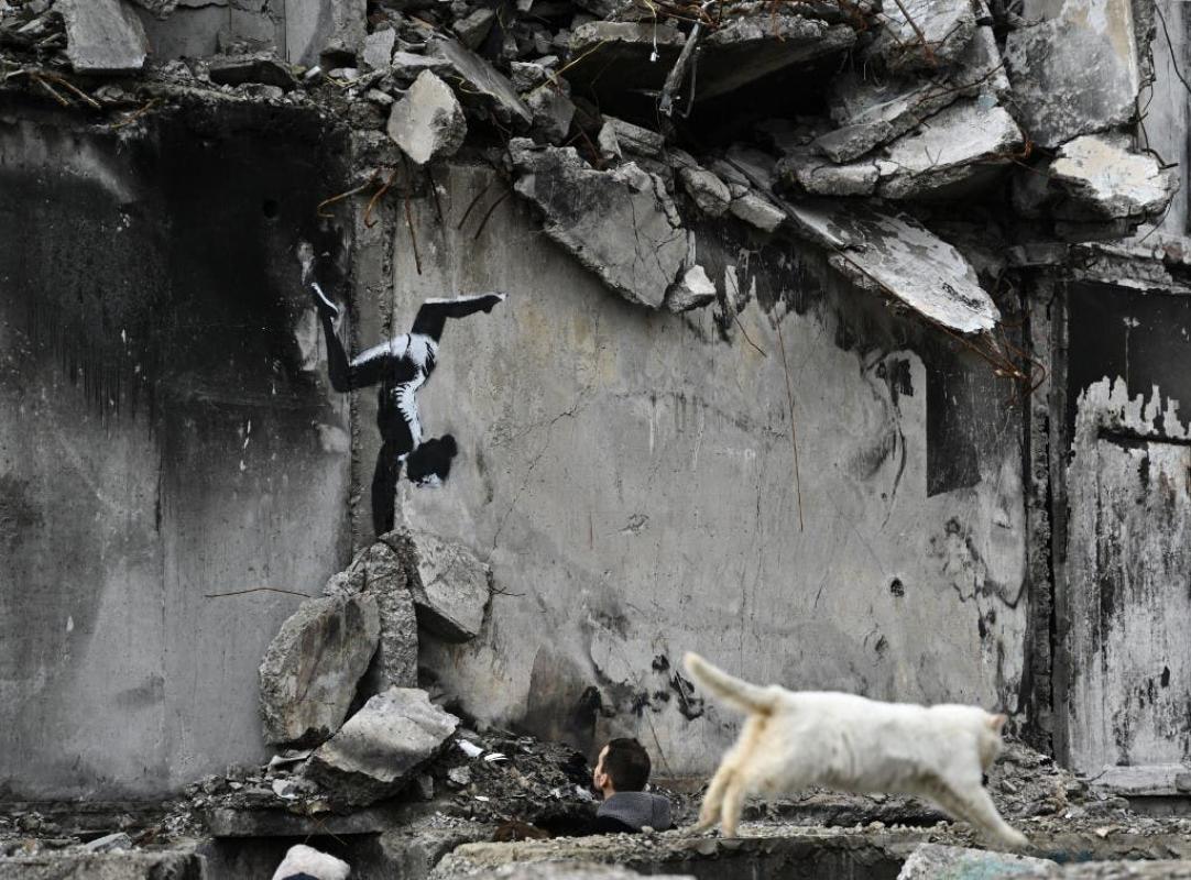 El famoso artista callejero británico Bansky reveló un nuevo grafiti pintado en un edificio bombardeado de la ciudad Borodianka, en las afueras de la capital ucraniana.