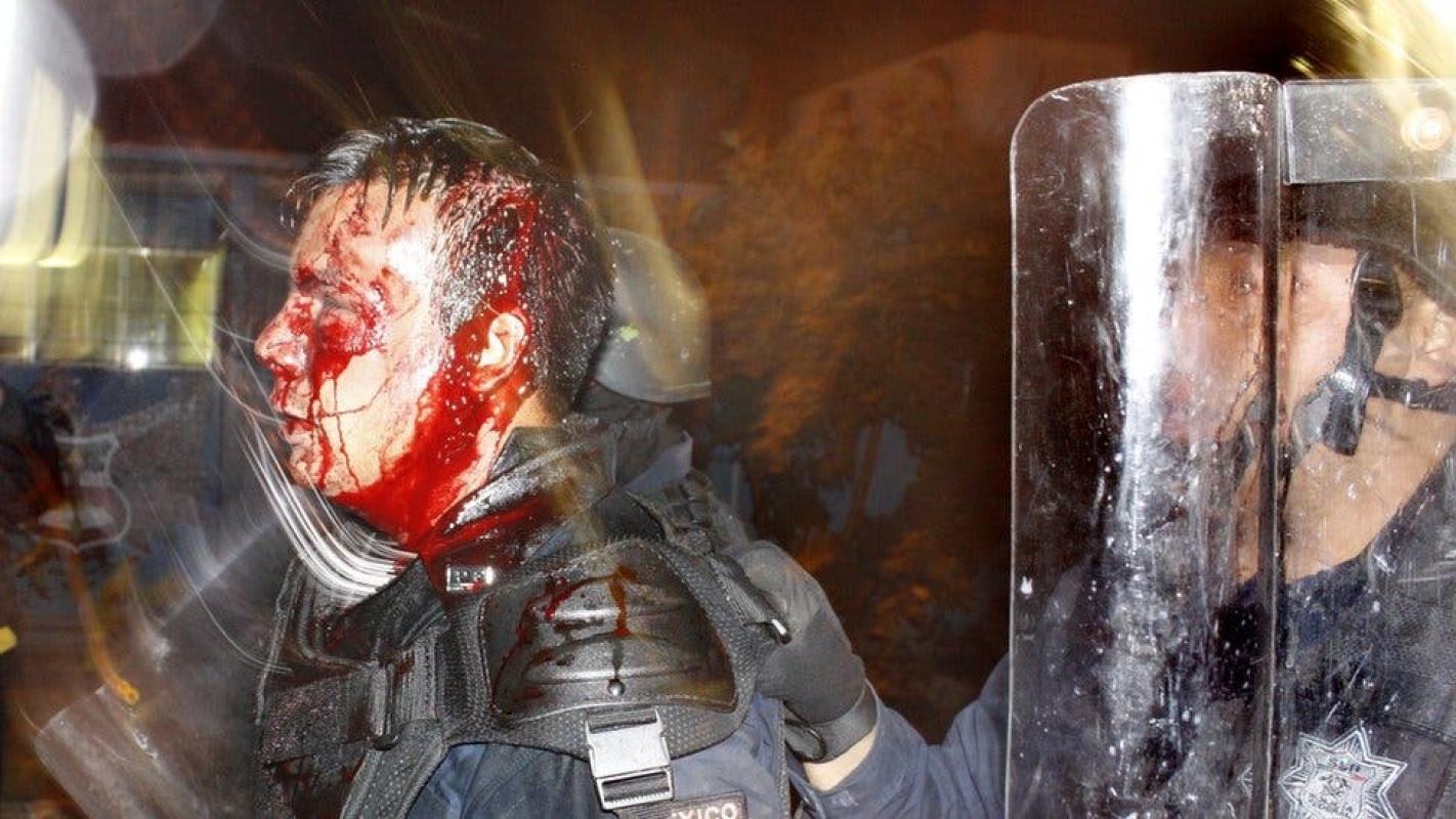 La más delicada: la foto de un policía mexicano con la cabeza bañada en sangre. Se señala como responsable de las heridas a los migrantes durante una supuesta confrontación en la frontera con Guatemala.