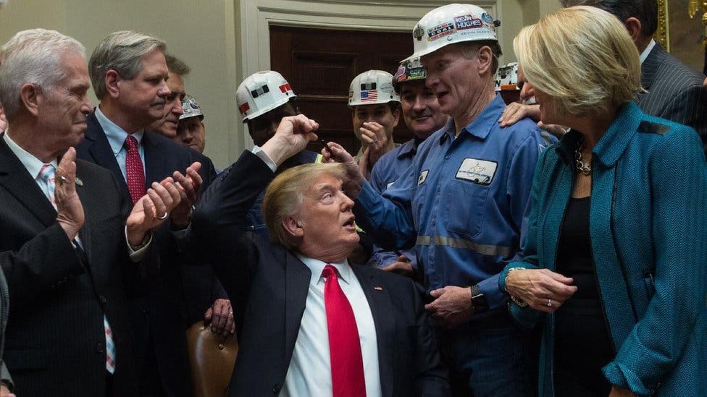 En cualquier caso, los trabajadores mineros han recibido con entusiasmo las medidas del presidente estadounidense. Y allí estaban con él para la foto.
