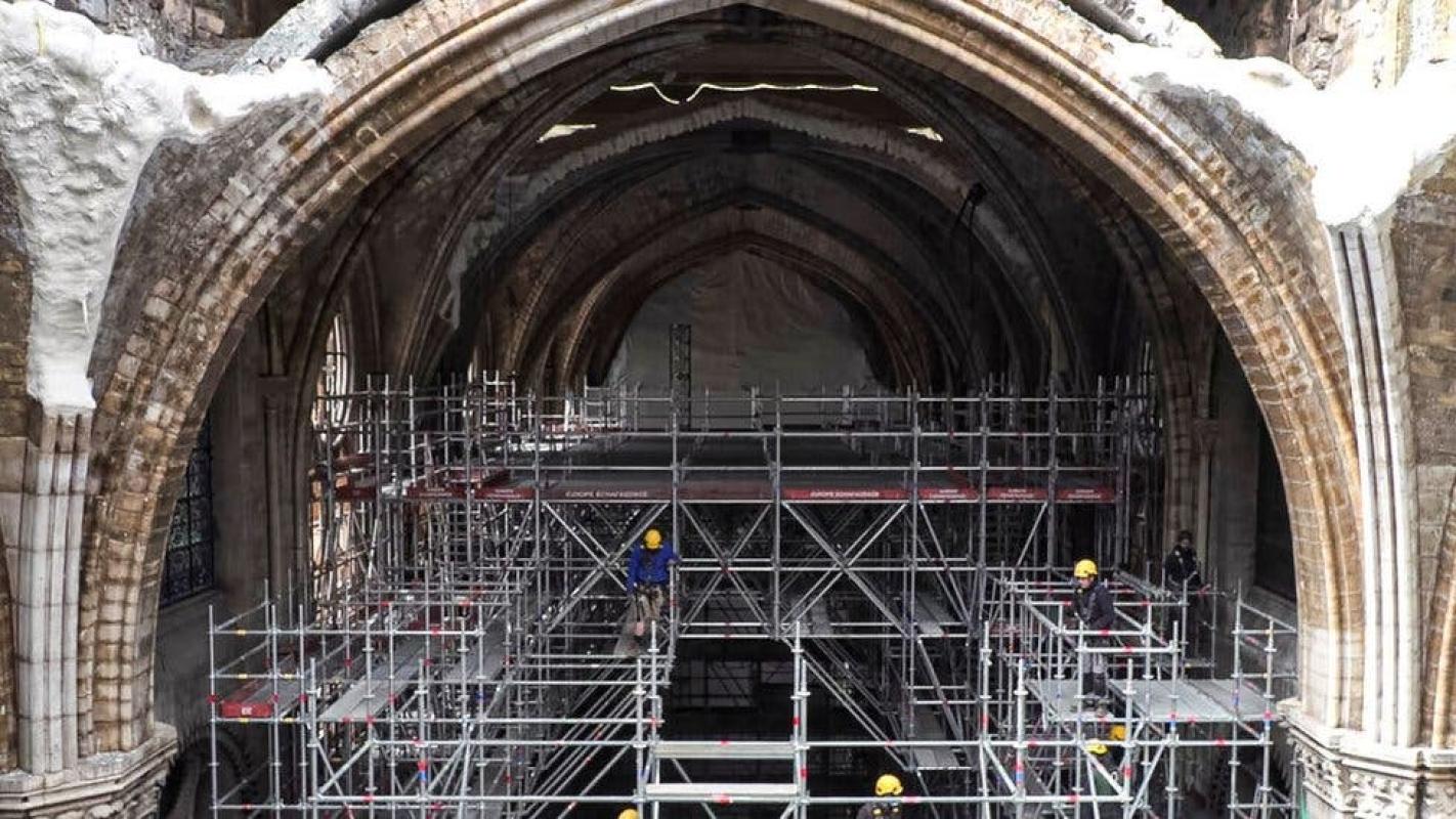 Hasta el momento, los trabajos en el monumento del siglo XII se han centrado en asegurar la estructura del edificio y eliminar los escombros que dejó el incendio.