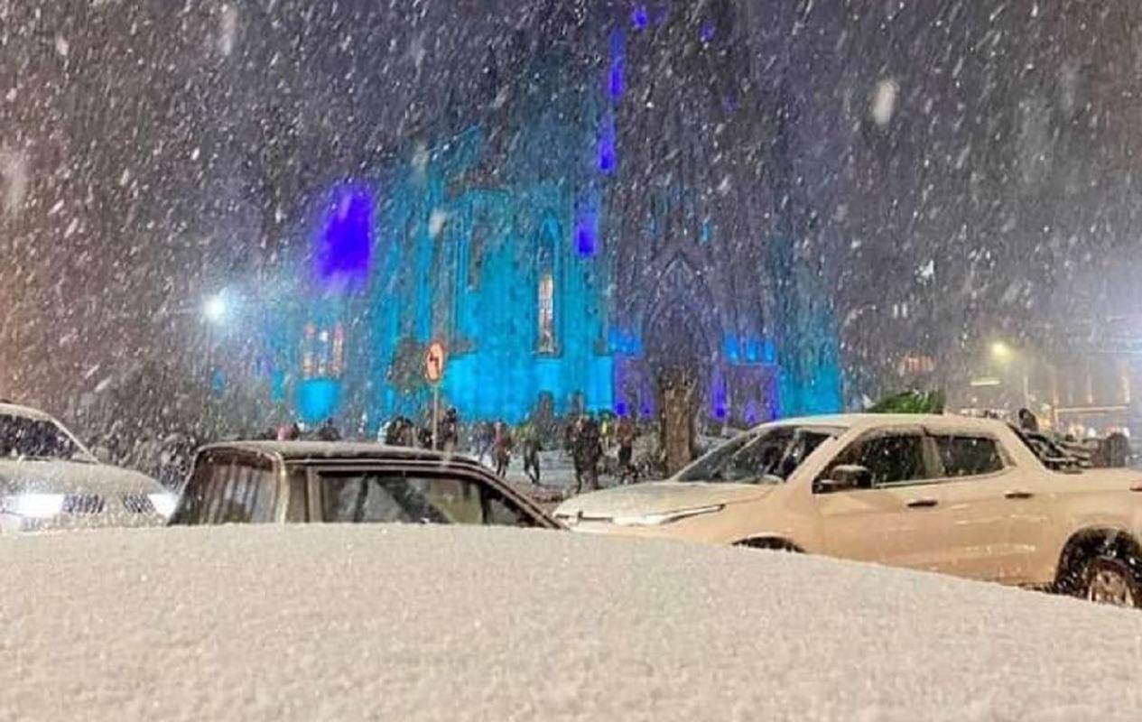 Un frente frío que trajo temperaturas extremadamente bajas al sur de Brasil dejó una sorpresa a los habitantes de Cambará do Sur, la noche del miércoles: nieve en las calles.
