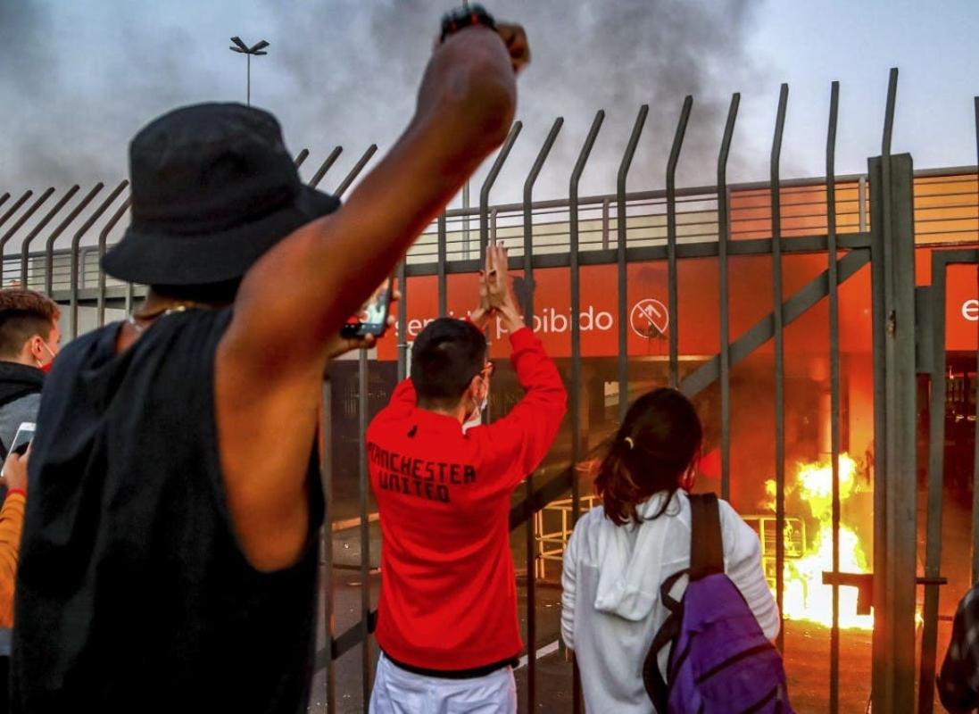 Una marcha pacífica llegó a ocupar una avenida, interrumpiendo el tránsito, frente a una sucursal de Carrefour en la zona este de Porto Alegre, la capital del estado Rio Grande do Sul, adonde se desplegaron varias decenas de uniformados para proteger el supermercado.