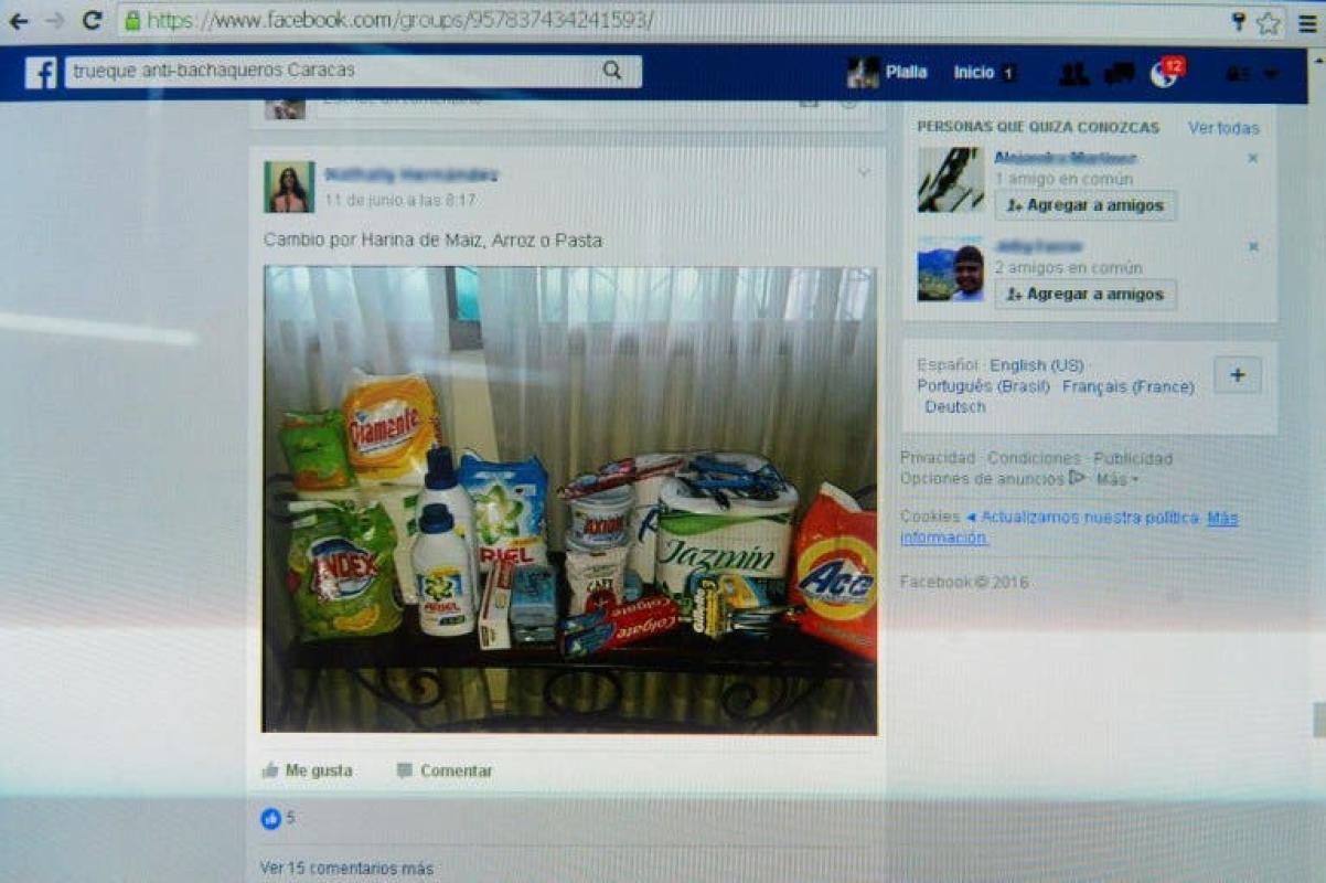 Como muchos, Plalla pasa sus días interactuando en las redes sociales. Pero su obsesión no es charlar con amigos o ver el último video viral. La búsqueda de harina, arroz, desodorante o papel higiénico llevó a los venezolanos a hacer trueques en Whatsapp, Facebook o Instragram.
