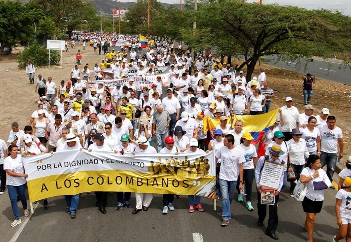 Mientras que el gobernador del departamento de Norte de Santander, cuya capital es Cúcuta, Edgar Díaz, hizo desde la marcha un llamado "para que los dos presidentes (el colombiano Juan Manuel Santos y Maduro) se puedan reunir, pero ante todo por la dignidad y el respeto".