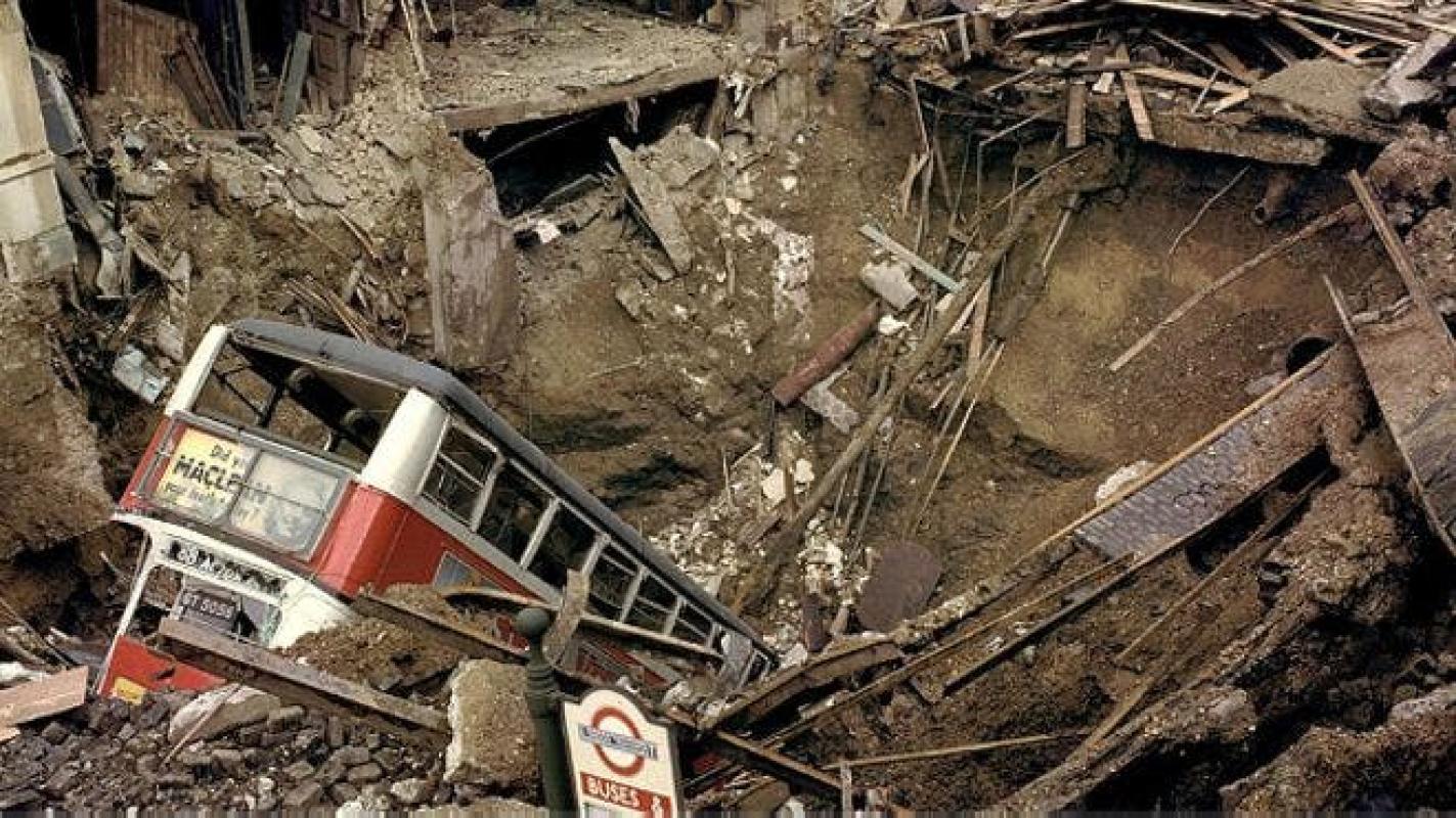 Una bomba cayó en Balham High Road, Londres, sobre la intersección de túneles del metro, y mató a 68 personas que estaban refugiabas en la estación.