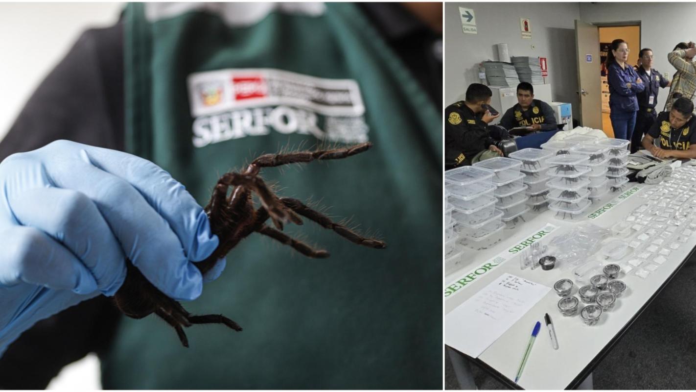 Tras la intervención, la Policía Nacional del Perú (PNP), el Servicio Nacional Forestal y de Fauna Silvestre (Serfor) y las autoridades aduaneras corroboraron que los animales eran de especies protegidas y amenazadas en el país, entre ellas, tarántulas adultas del tamaño de una mano (de la especie Pamphobeteus antinous), ciempiés (Scolopendra sp.) y hormigas bala (Paraponera clavata).