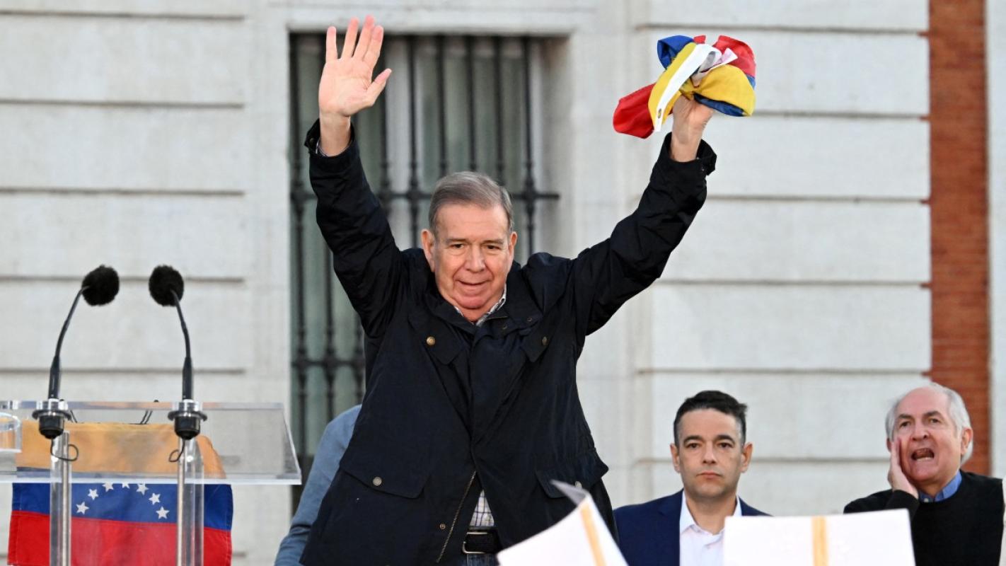 "¡Edmundo González Urrutia, presidente electo de Venezuela, en Madrid!", gritó la presentadora del acto cuando el candidato de 75 años subió al estrado con una bandera venezolana, sin llegar a dirigirse a un público que lo saludaba al grito de "¡presidente, presidente!".