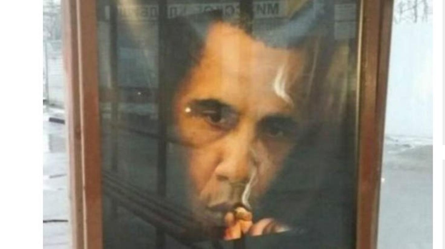 Una imagen del presidente de Estados Unidos, Barack Obama, con un cigarrillo en la boca protagoniza un polémico anuncio antitabaco aparecido en Moscú, Rusia.