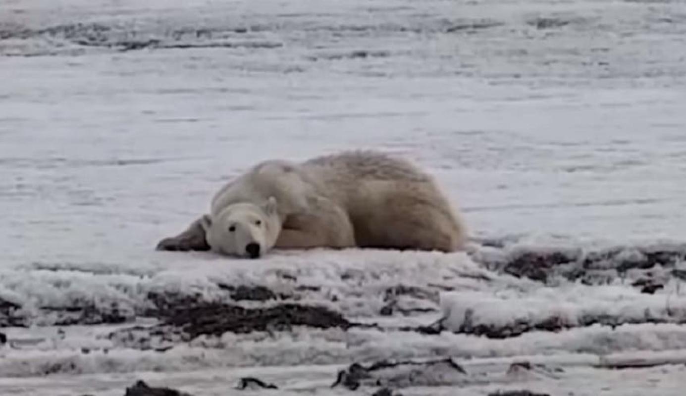 Exhausto y desnutrido: El desgarrador video de un oso polar que recorrió 700 km en busca de alimento