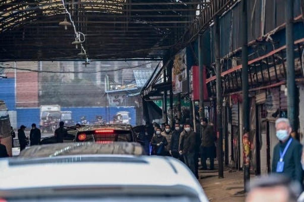 El mercado, donde se vendían animales salvajes vivos, está cerrado desde enero de 2020, y los guardias solo dejaron entrar a los vehículos del equipo de investigación de la OMS.