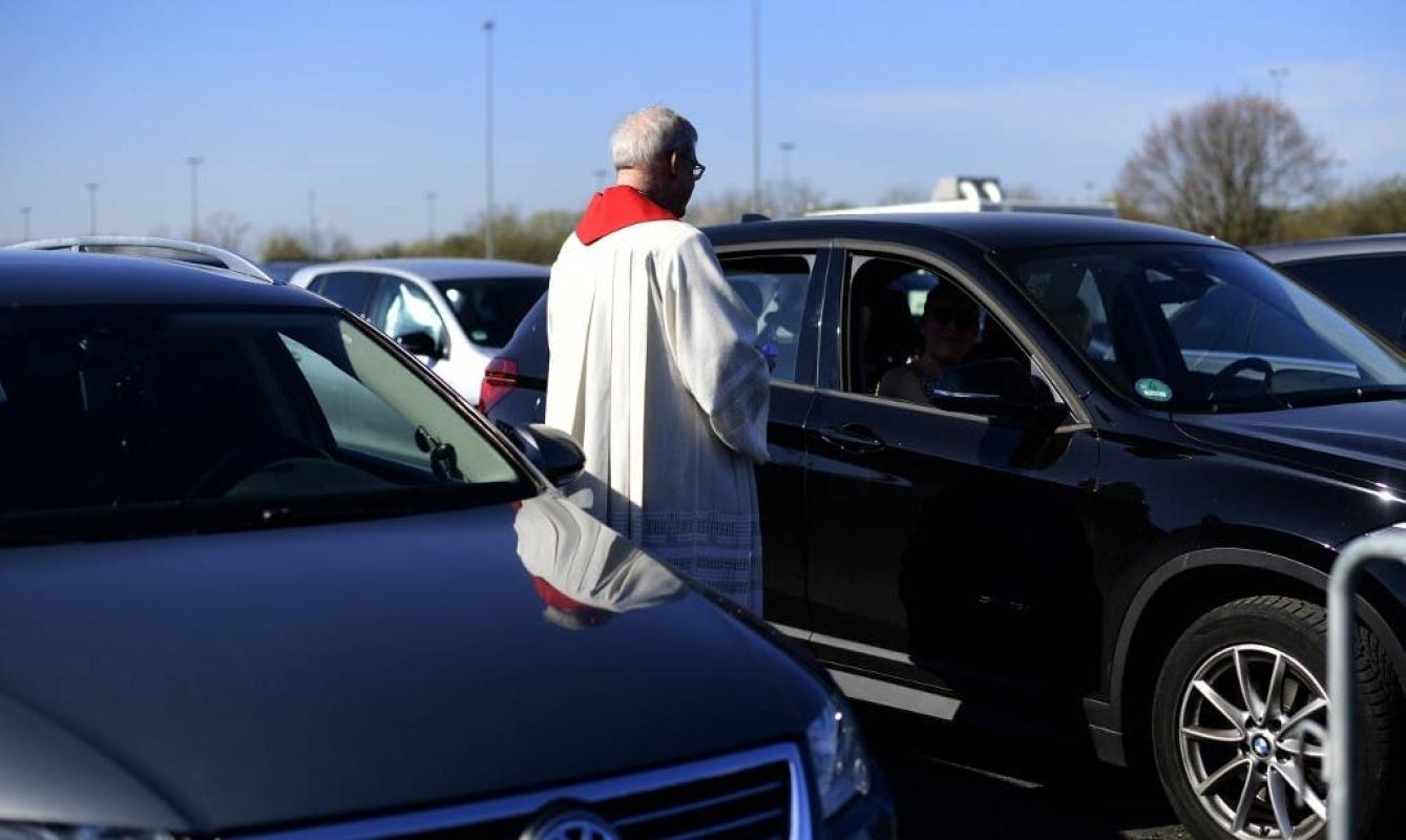 Varios centenares de cristianos asistieron a una misa de Viernes Santo en un autocine de Düsseldorf, en Alemania, donde pudieron estar "juntos" en la comunión... pese a estar estrictamente separados.
