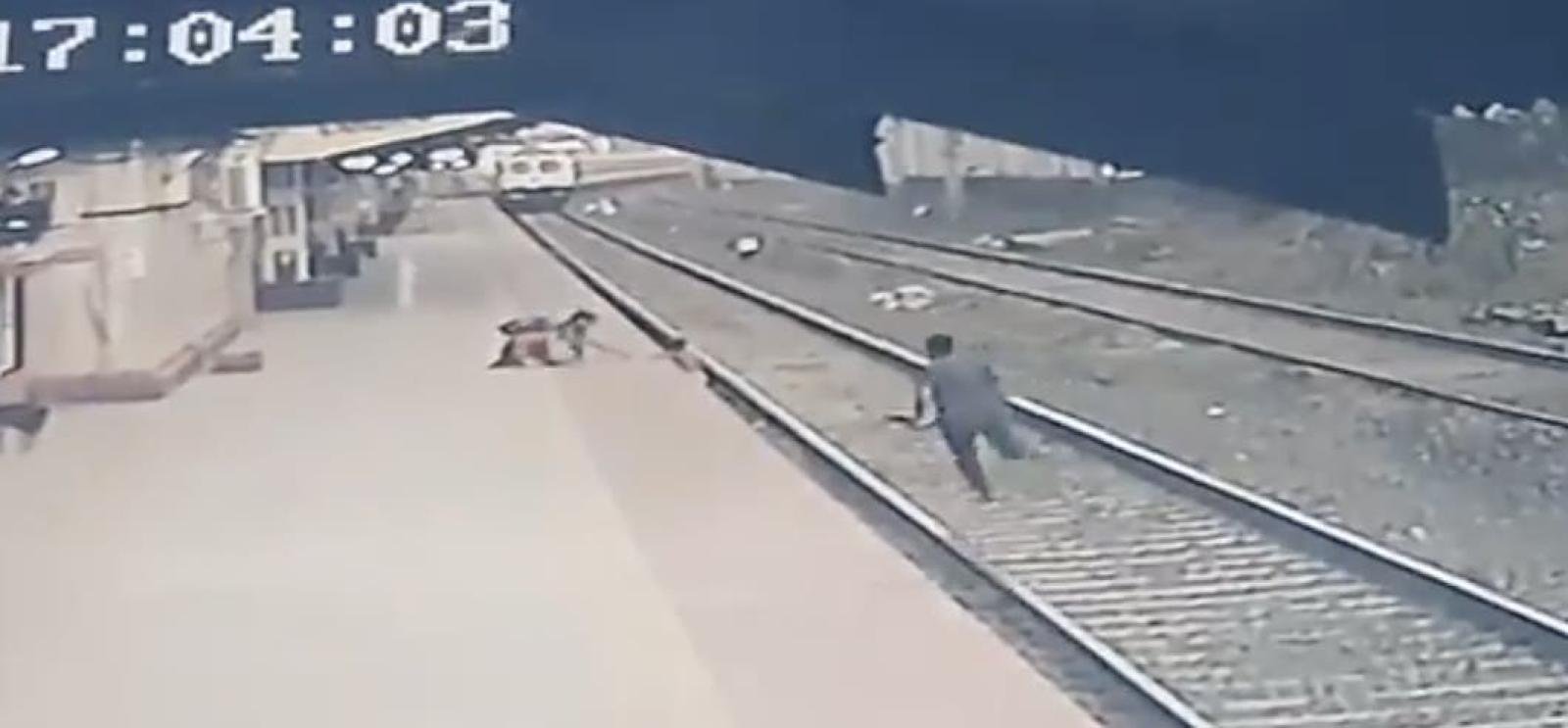 [VIDEO] Funcionario ferroviario salva a un niño de 6 años de ser atropellado por un tren en India