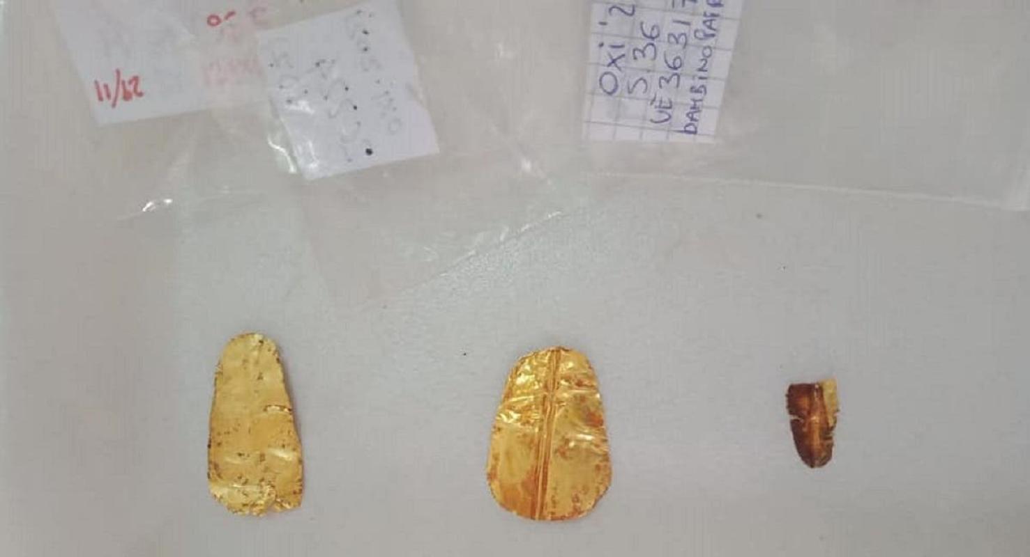 Allí se encontró en una de las tumbas, restos humanos de dos personas no identificadas, cada una con una lengua de oro en sus bocas.