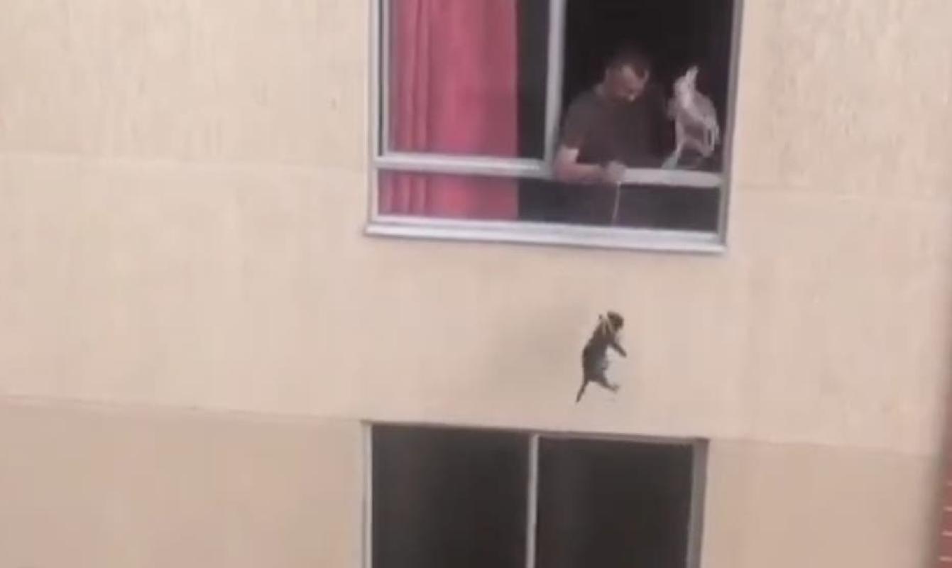 [VIDEO] Hombre amarra del cuello a su perro para "pasearlo" desde el segundo piso