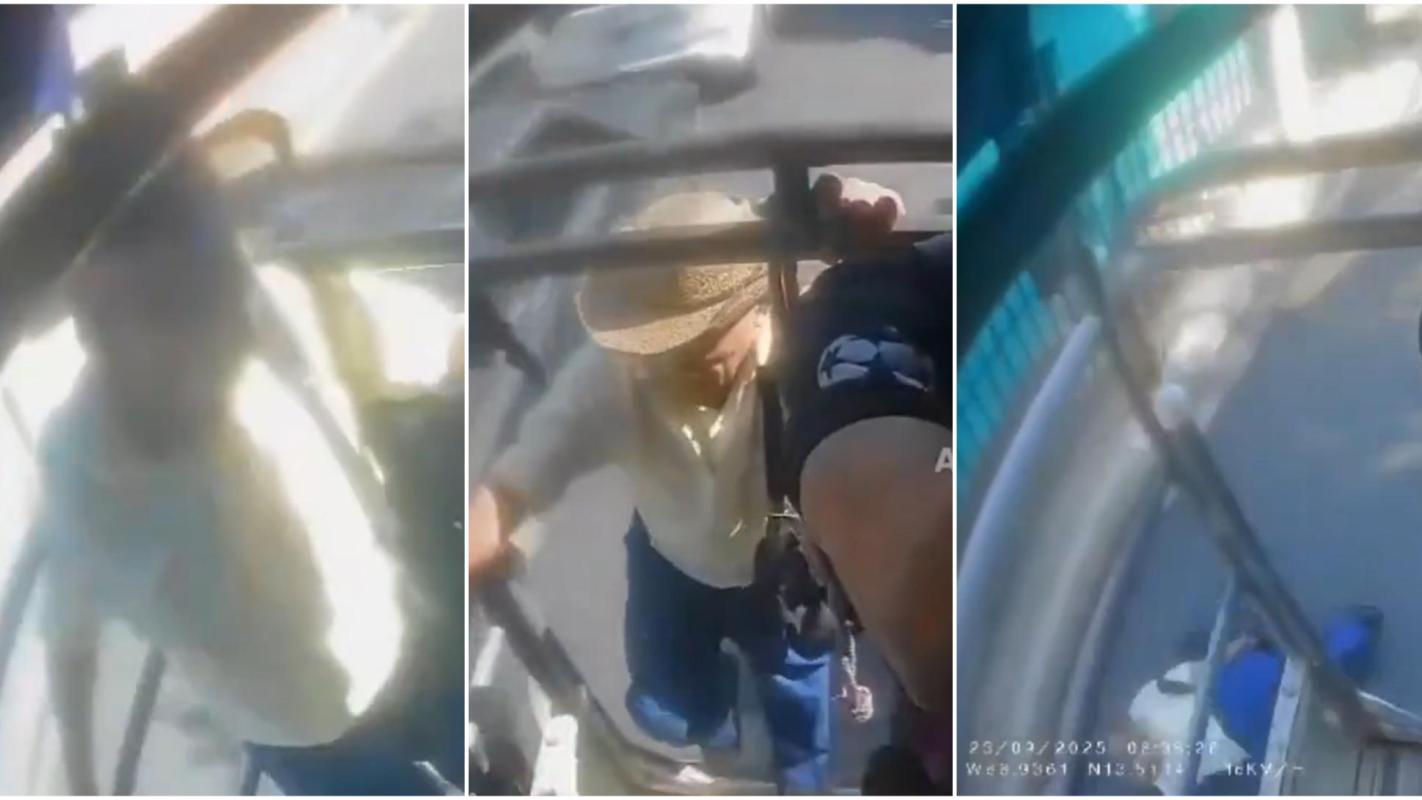 El registro audiovisual muestra claramente el instante en que Campos pierde la estabilidad y cae al pavimento, lo que provocó un debate sobre las condiciones de seguridad en el transporte público de la zona.