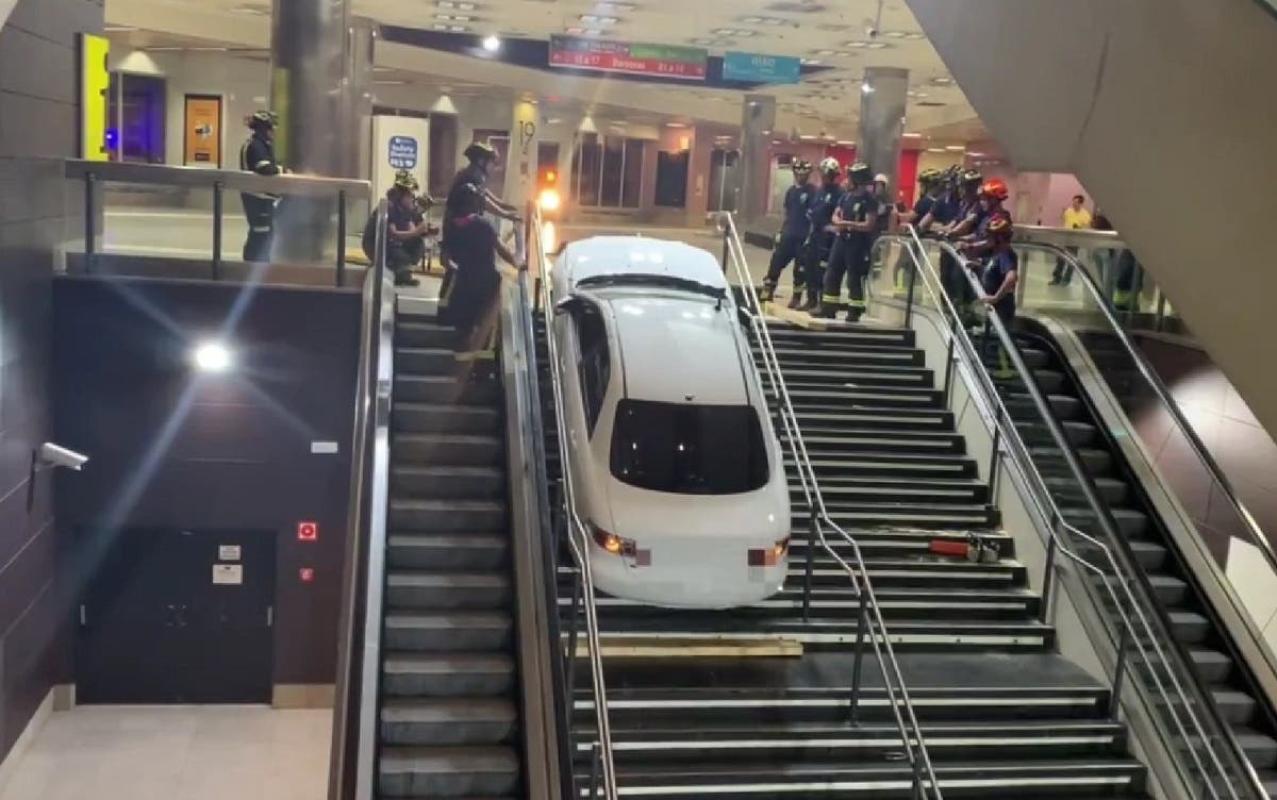 La noche del lunes, cerca de la medianoche, un automóvil quedó incrustado en las escaleras del intercambiador de Plaza Elíptica, recinto donde confluye una estación perteneciente a las líneas 6 y 11 del Metro de Madrid, en España.