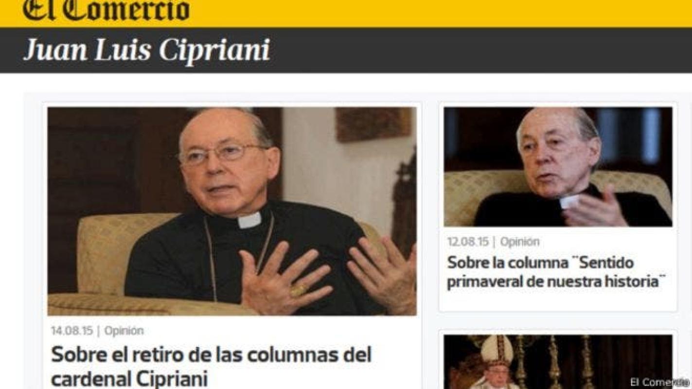 Hace pocos días el principal diario nacional de Perú, El Comercio, separó públicamente como columnista al cardenal de ese país, arzobispo Juan Luis Cipriani. Una decisión sin precedentes en esta nación considerada profundamente conservadora y religiosa.