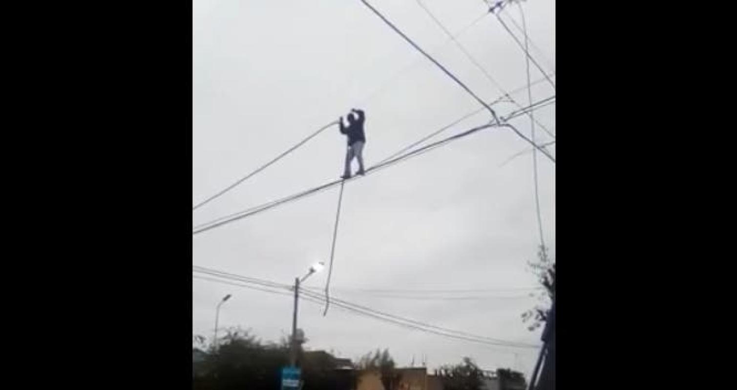 "Ladrón equilibrista": Sorprenden a sujeto que robaba cables de luz a 10 metros de altura