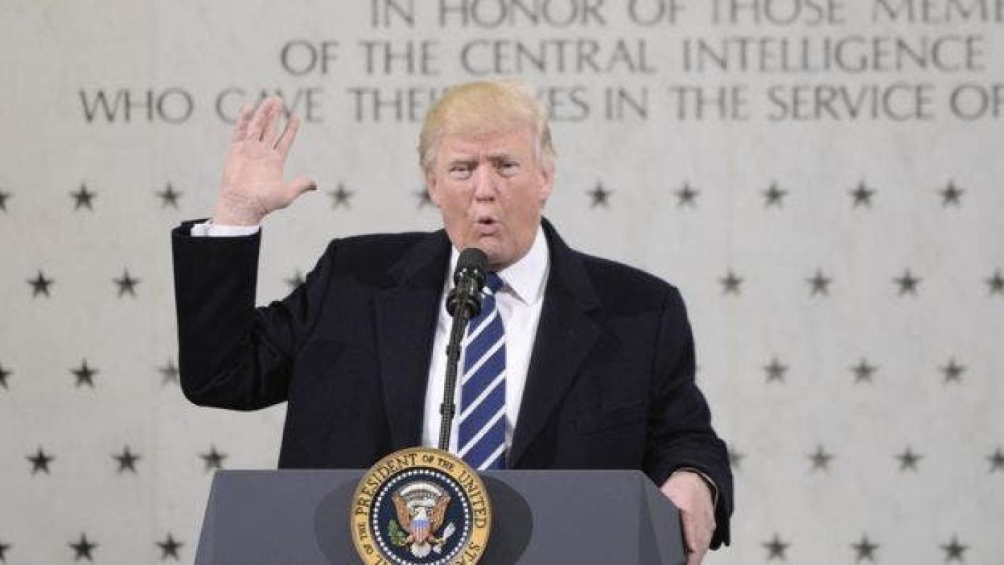 | El presidente de EE.UU., Donald Trump, dijo sus señalamientos a la prensa desde los cuartes de la CIA. |