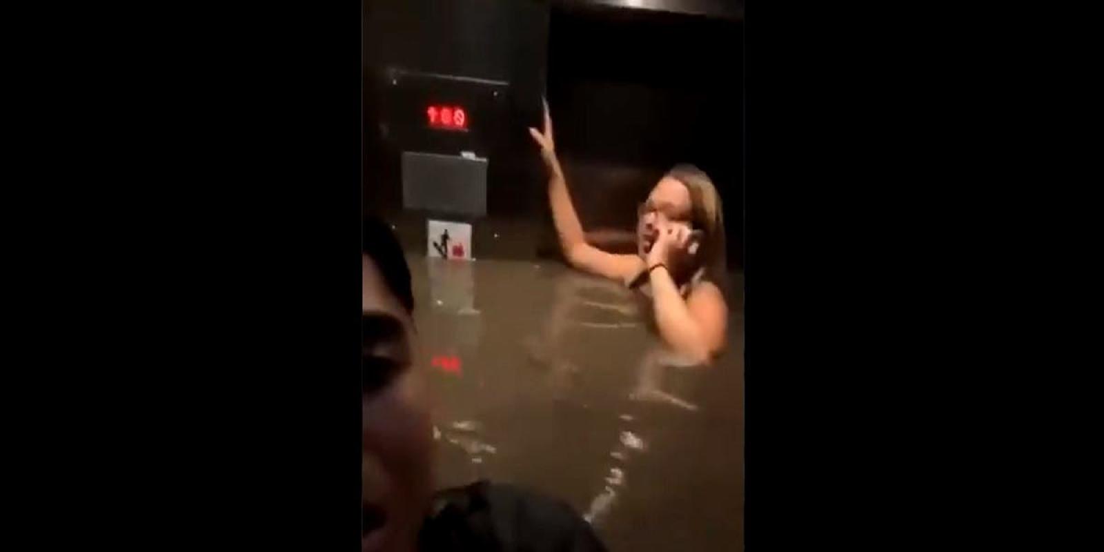 Lo grabó: Joven queda atrapado con dos amigos en ascensor inundado
